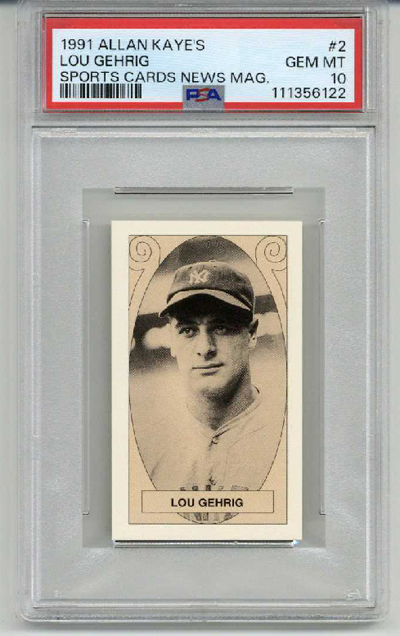 The item you are buying is a PSA GRADED and ENCAPSULATED 1991 Allan Kayes Sports Cards News Magazine #2 card of Lou Gehrig. The card was graded a 10 by PSA. This card comes from my personal collection. The plastic of the encapsulation has no cracks and is scratch free.