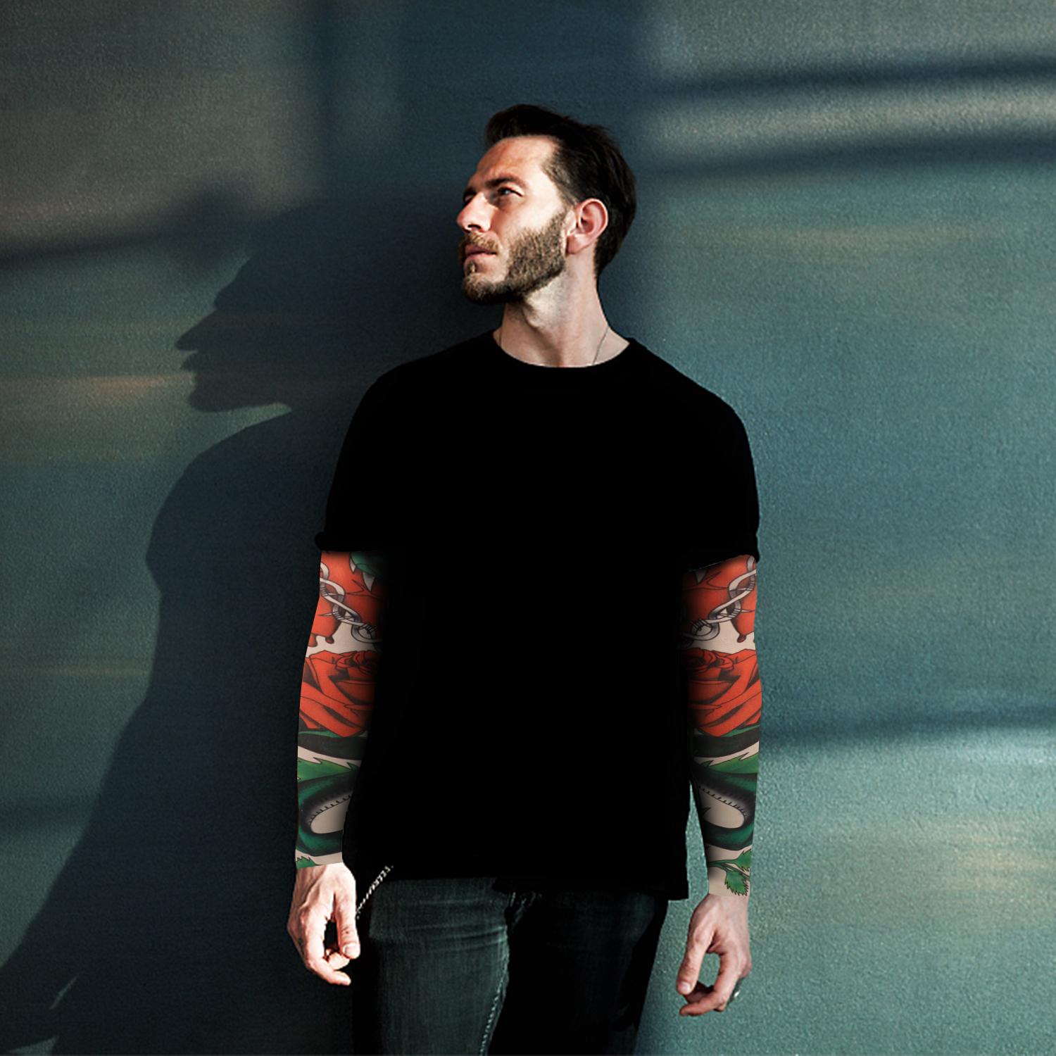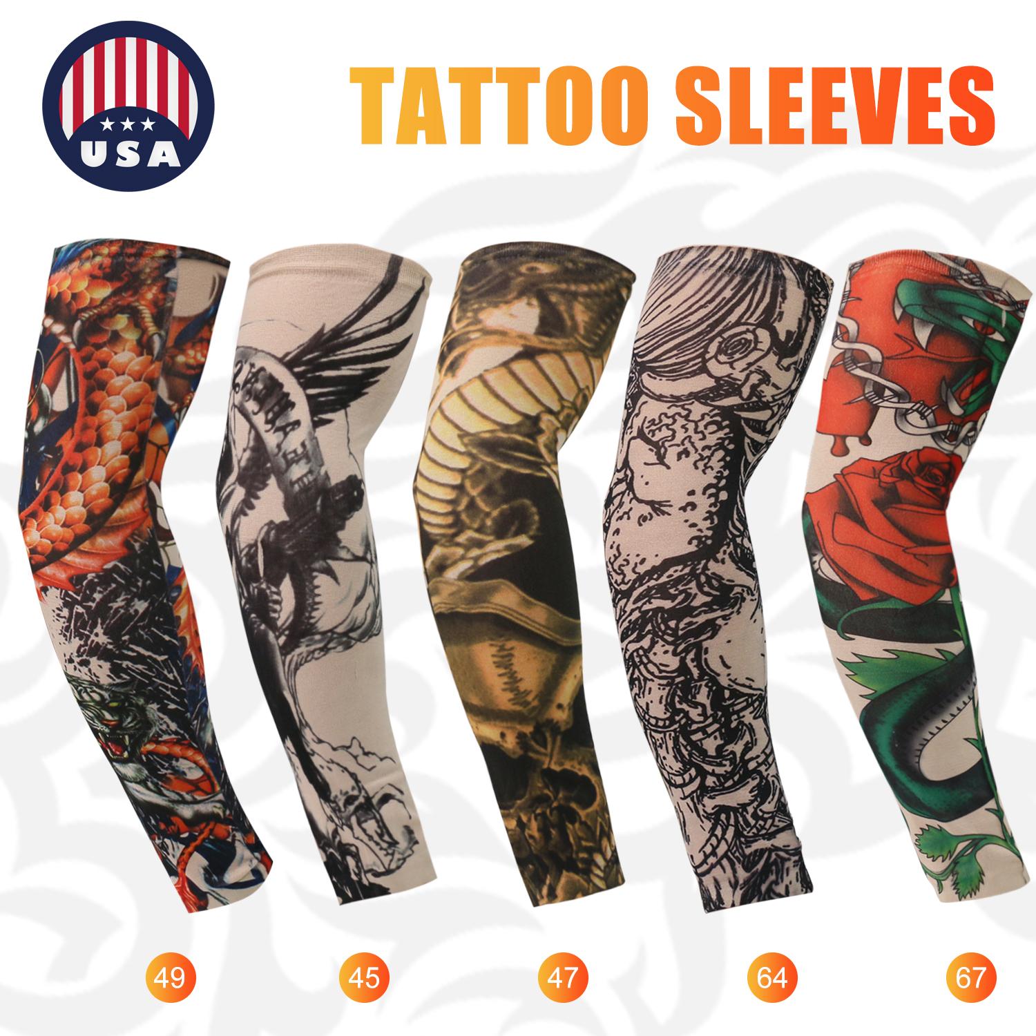 【Temporary Tattoo Sleeve Body Art】- 5 styles design. Various tattoo styles are printed on the sleeves to look like a real tattoo on the arm without fading.