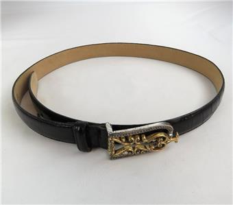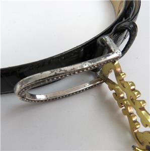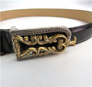 Crafted from high-quality leather with a croc-embossed finish, this black belt features an ornate buckle that adds a touch of elegance.