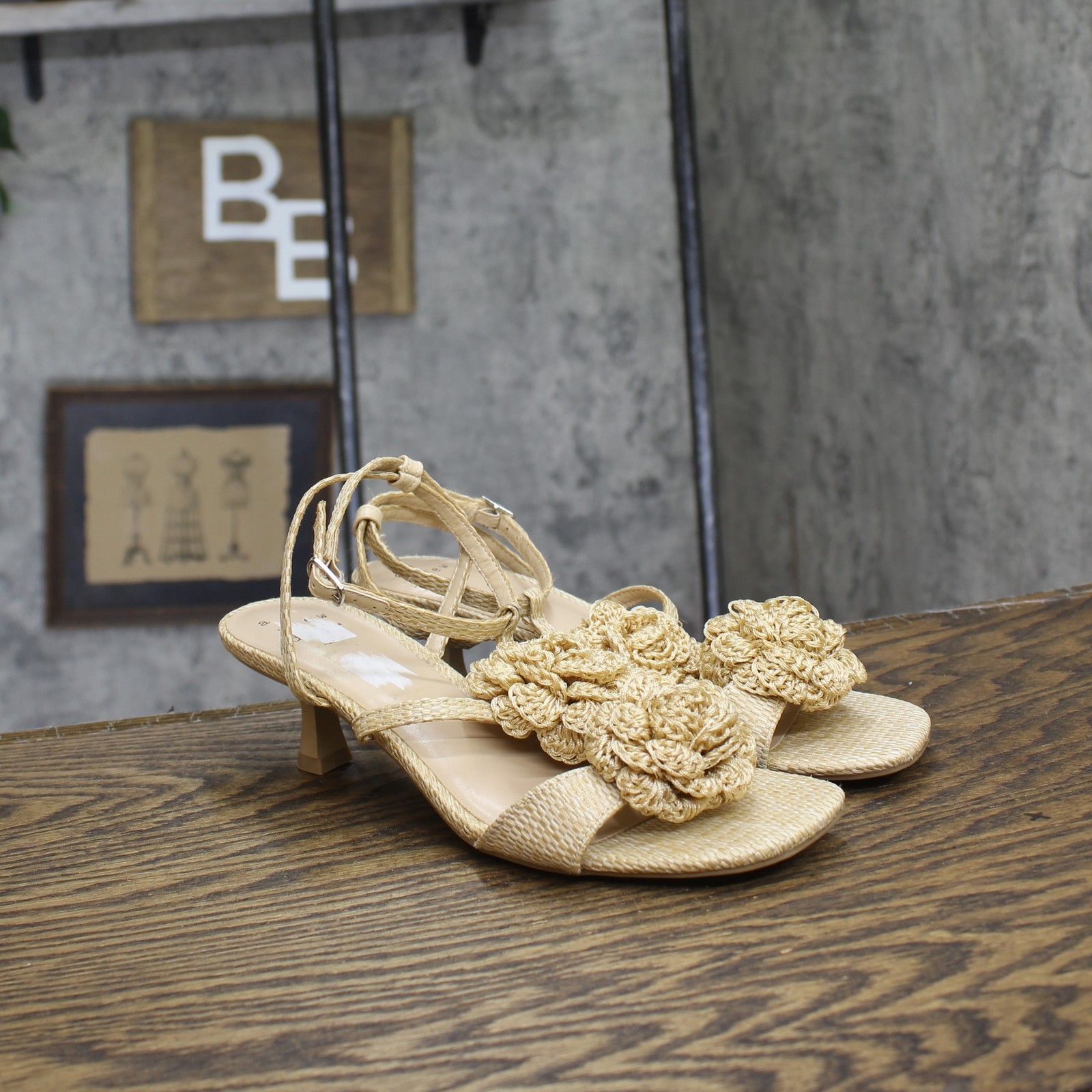 Step into effortless elegance from morning to night with these Esme Floral Crochet Kitten Heels from A New Day. These D-toe heels are designed with crocheted floral detailing on the straps for a standout look. They're set on two-inch Louis heels and boast an ankle buckle closure, providing a stylish lift to your height and a stay-put fit.A New Day: Style that goes wherever you do. Floral crochet kitten heels in tan 2in Louis heel Adjustable buckle strap closure Open D-toe Medium width Sizing: Womens Care and Cleaning: Clean With Mild Detergent Footwear Insole Material: 100% Polyurethane Features: Buckle Construction: Adjustable Buckle Strap Footwear Lining Material: 100% Polyurethane Toe Style: D Toe Footwear Upper Material: 98% Polyester and 2% Zinc Alloy Heel: Approximately 2.0 Inches Louis Heel Footwear Outsole Material: 57% Polyester and 43% TPR (Thermoplastic Rubber) Shoe Width: Medium Footwear toe openness: Open Toe Footwear outsole details: Textured Outsole