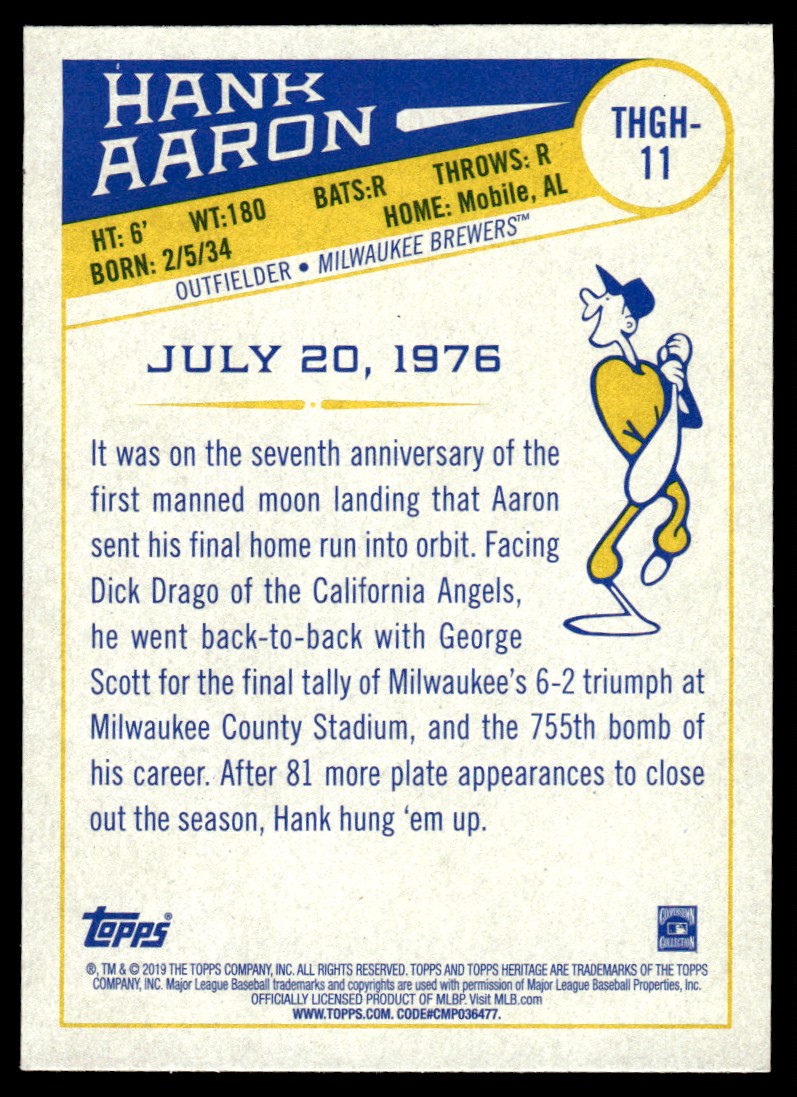 | 2019 Topps Heritage HR. NO. 755 Hank Aaron #11 |