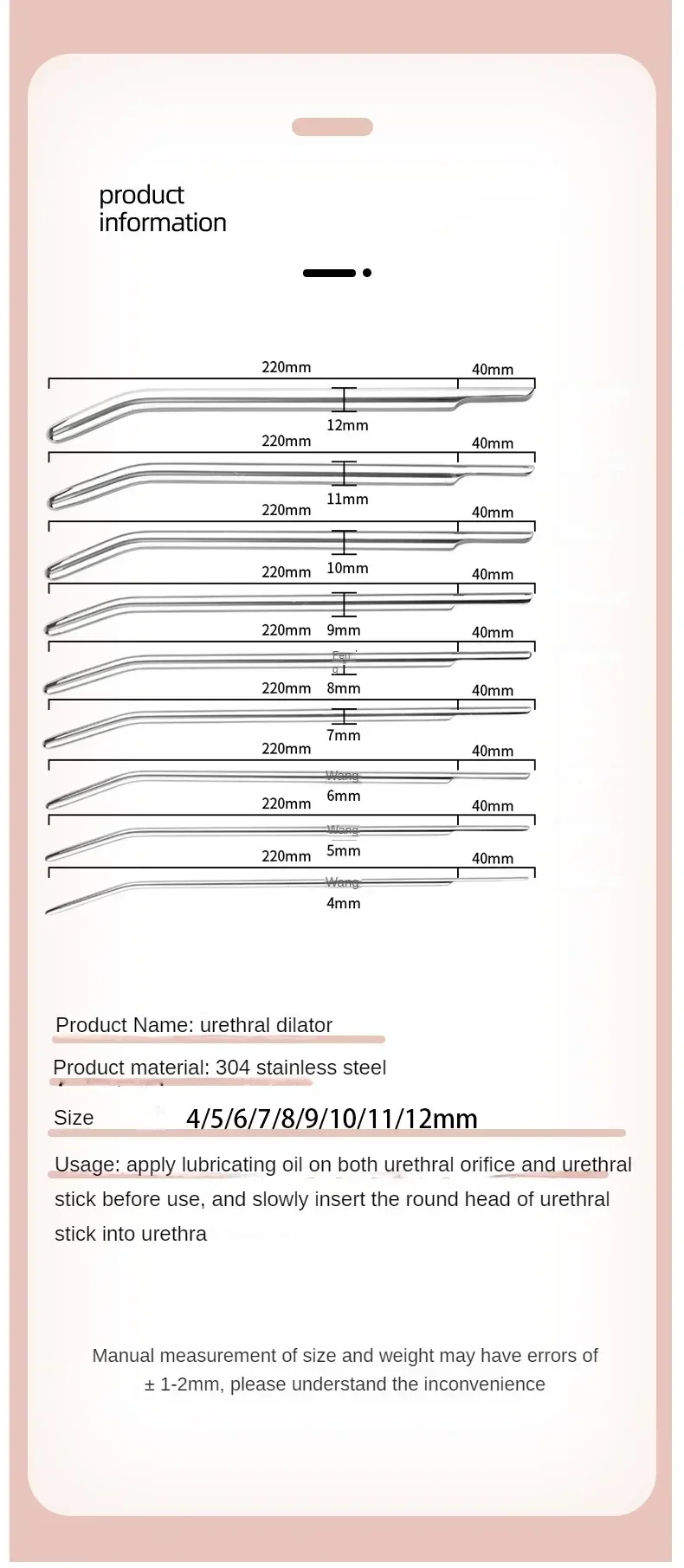 Anwendung: Tragen Sie vor dem Gebrauch Schmiermittel auf die Harnröhrenöffnung und die Harnröhrenstange auf und führen Sie den runden Kopfteil der Harnröhrenstange langsam in die Harnröhre ein