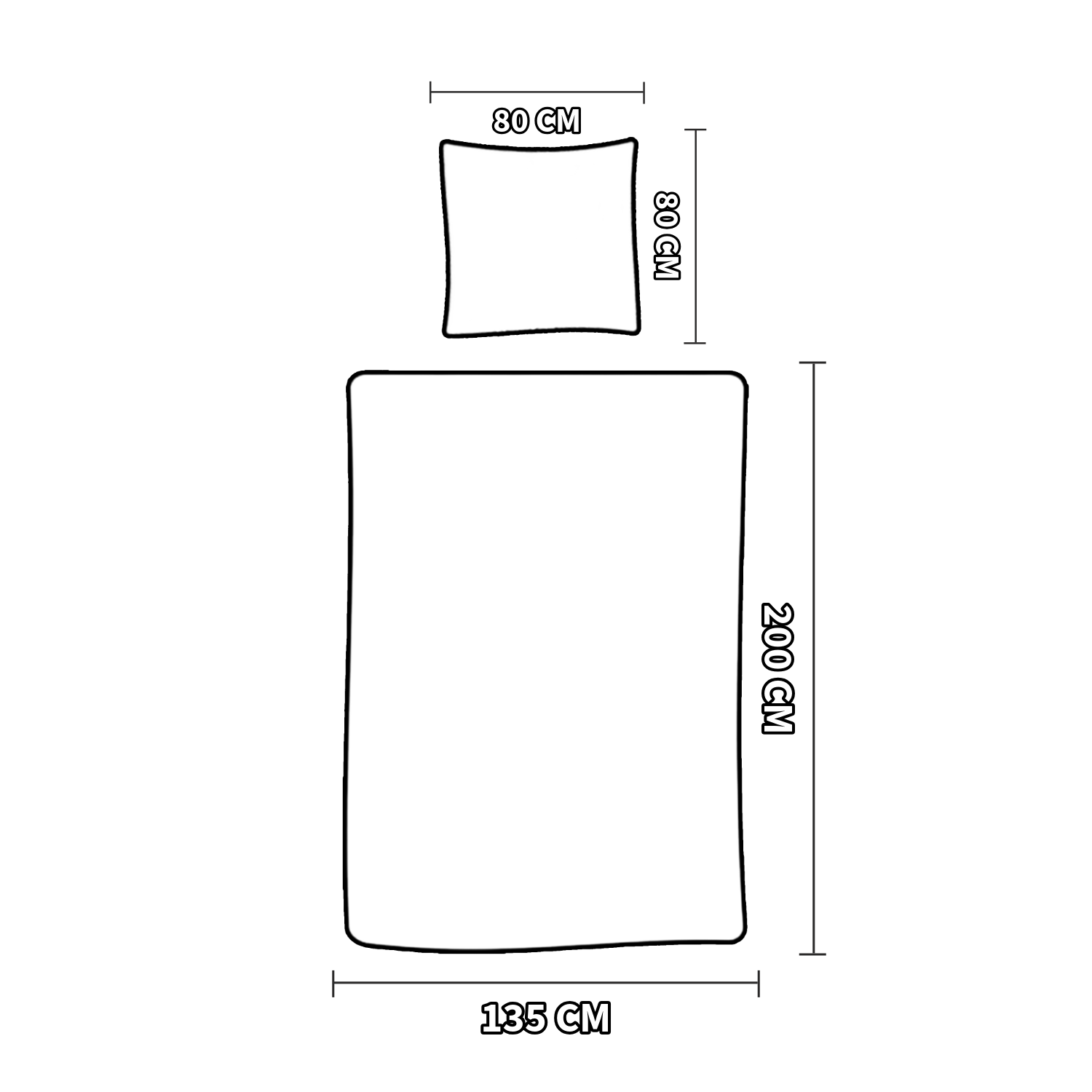 La parure se compose d'une housse de couette (135x200 cm) et d'une taie d'oreiller (80x80 cm).