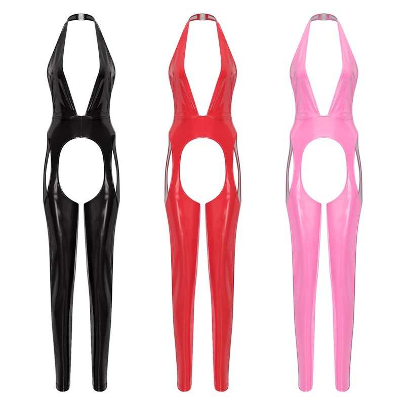 Womens See-through Mesh Crotchless Bodysuit Hollow Out Halter Backless Leotard Lingerie Nightwear.