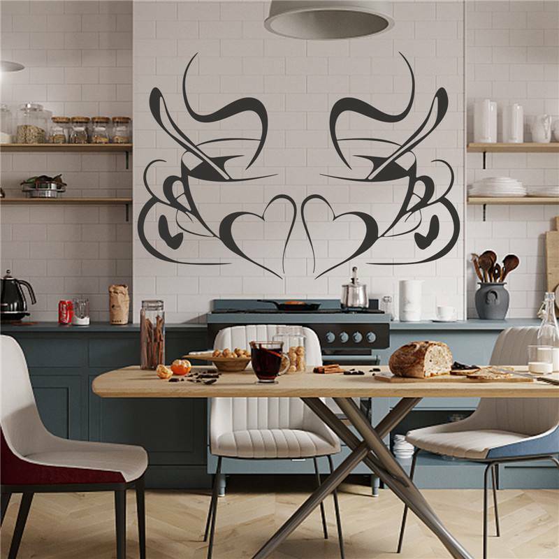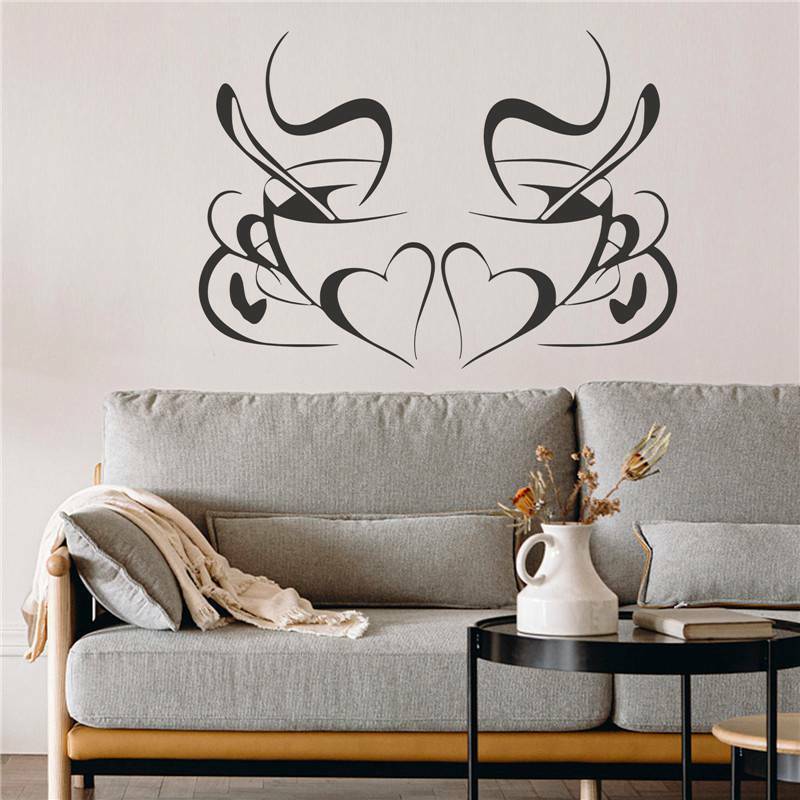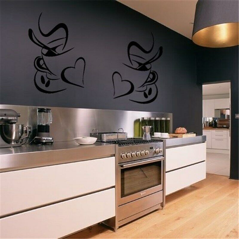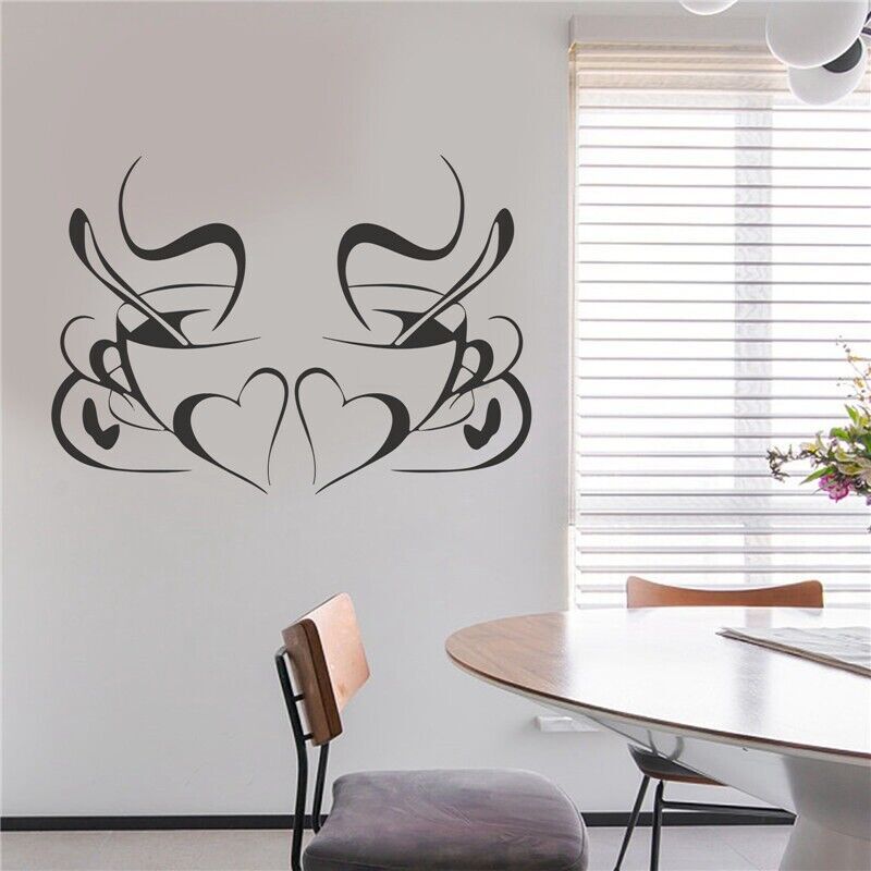 Wall Stickers Diner Hearts 2 Coffee Decals Vinyl Art Cafe Cups Kitchen DIY
