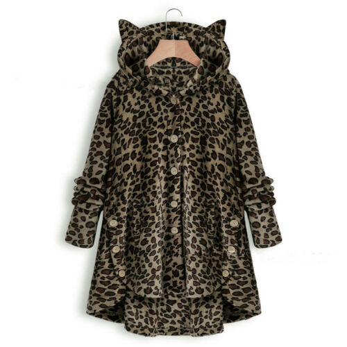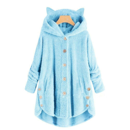 Warm Fluffy Fleece Hoodie Faux Fur Coat Hooded Button Girls Cat Ear Jacket