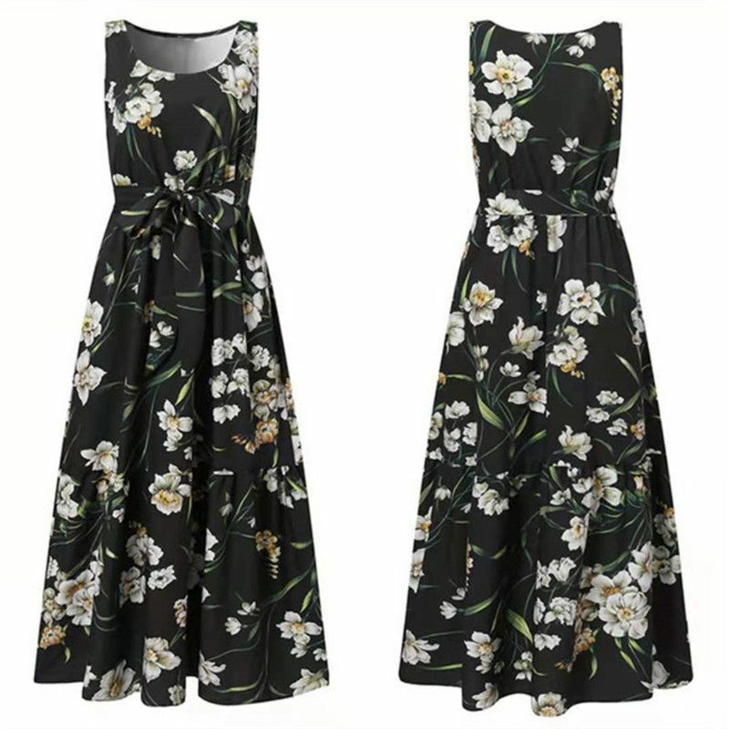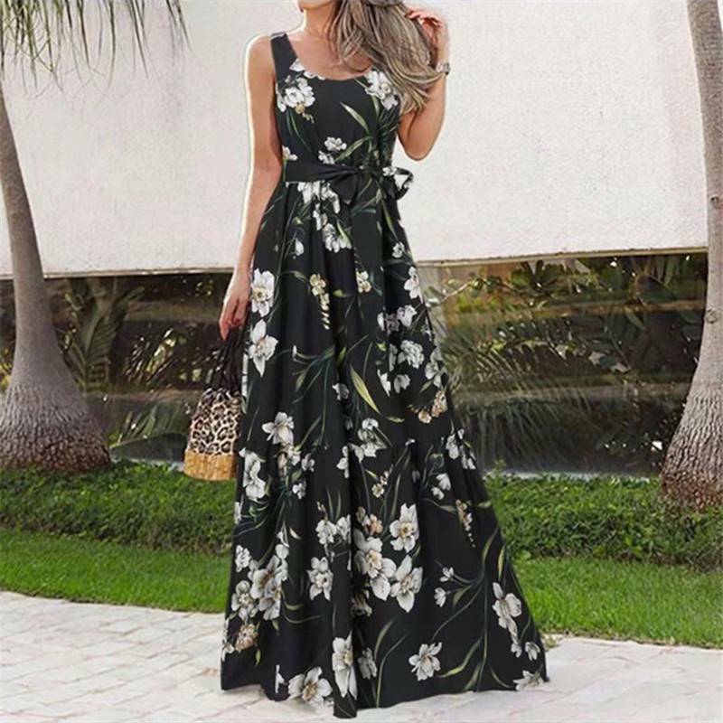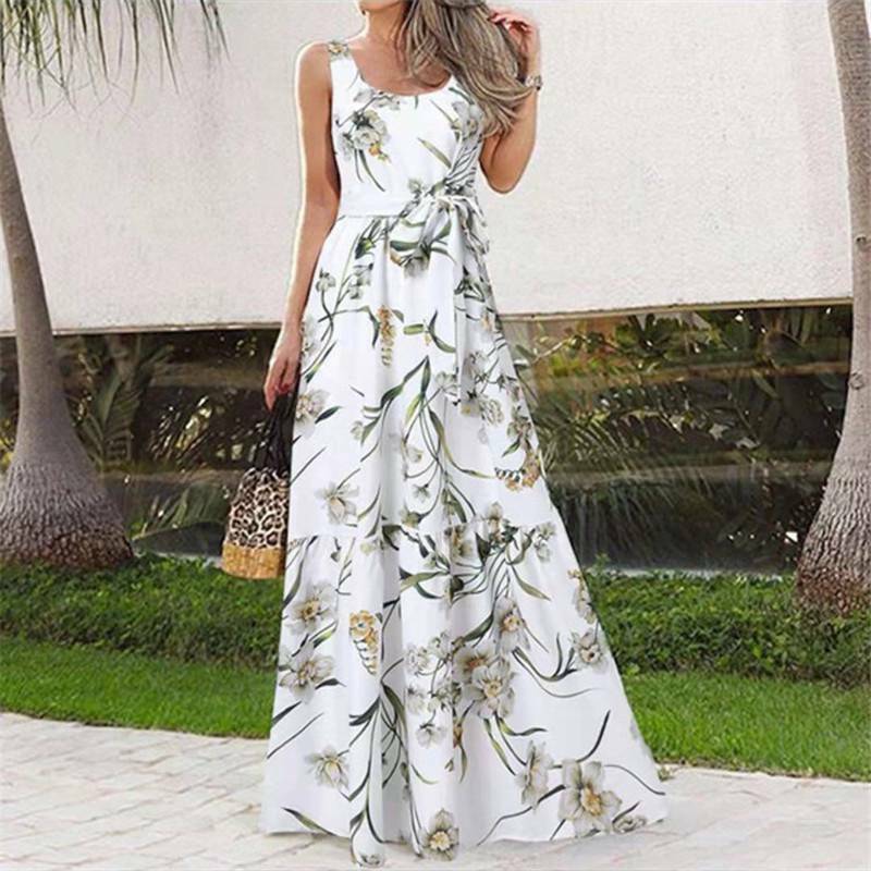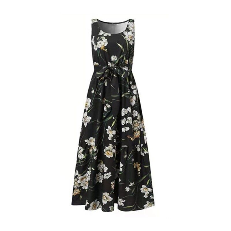 -Features:Europe and America Vacation Leopard Print Sleeveless Vest With Belt Tropical Print Spliced Lace-up Skirt Dress