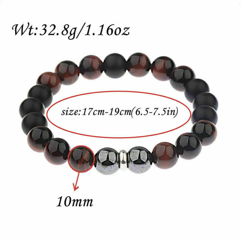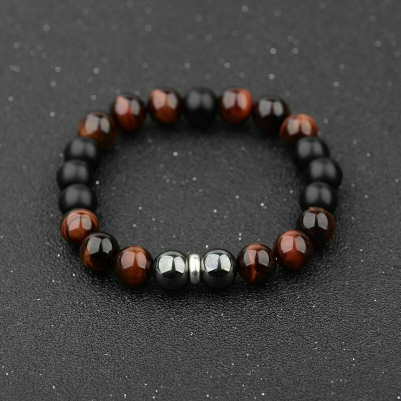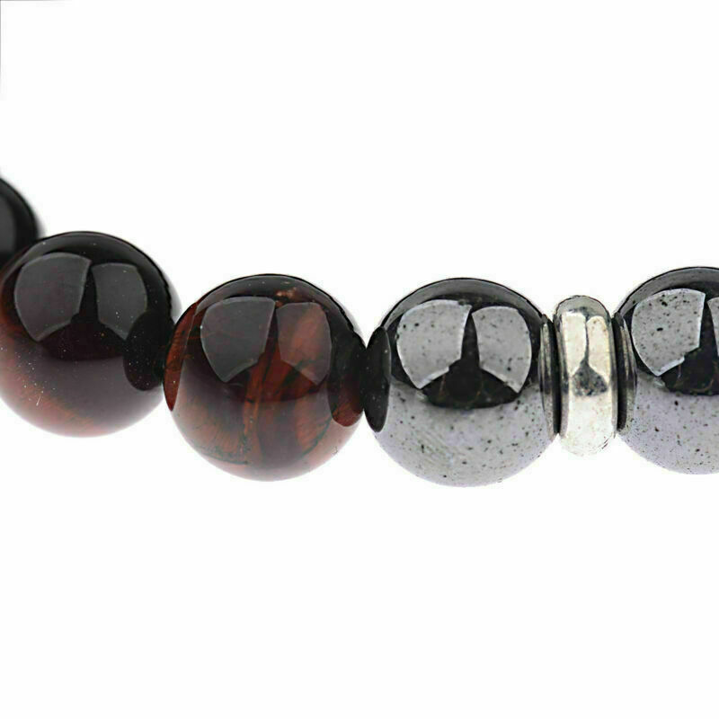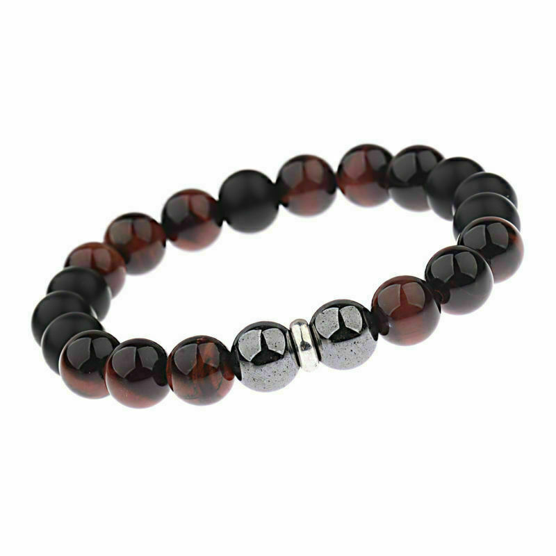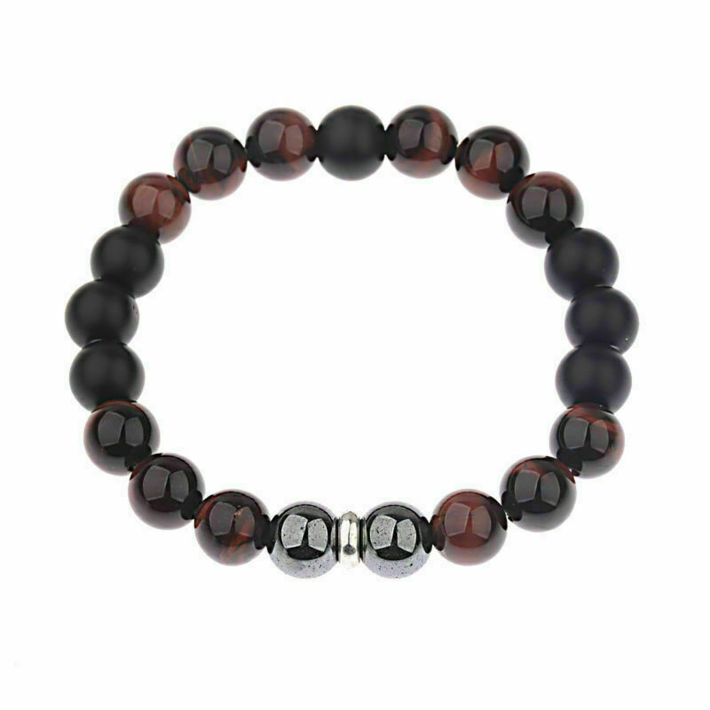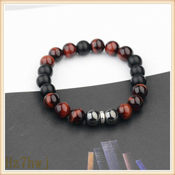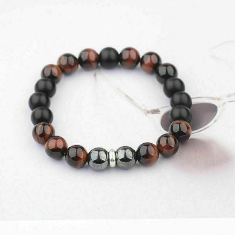 Hot Men's 10mm Tigers Eye+Hematite+Onyx Gemstone Beaded Bracelet 8''