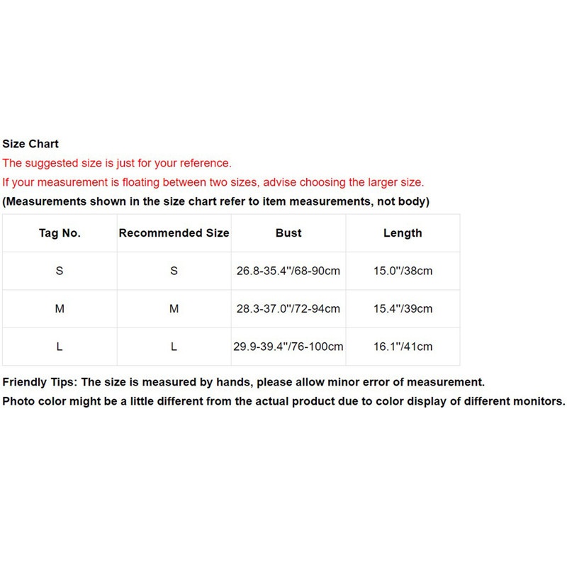 | Tag No. | Recommended Size | Bust | Shoulder | Waist | Sleeve Length | Length |