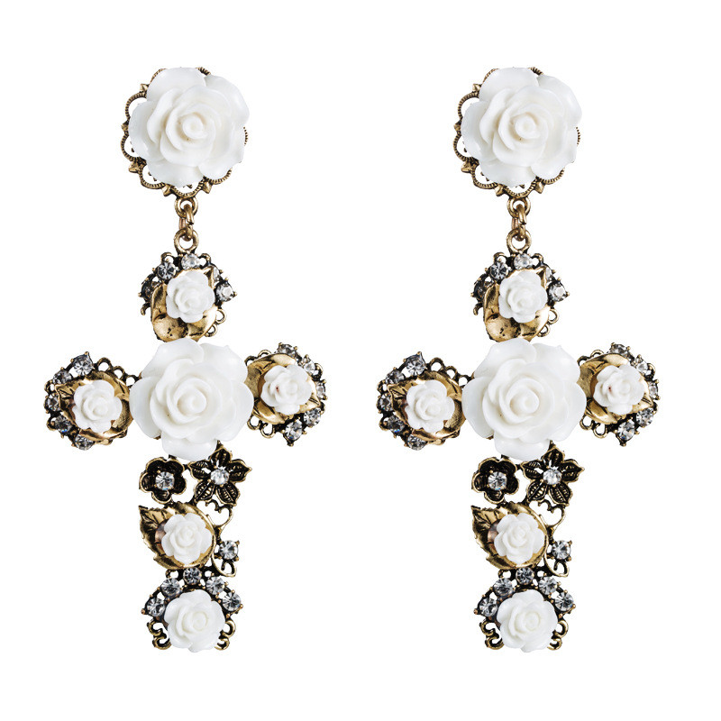 Rose Flower Ear Studs Fashionable Elegant Long Retro Baroque Earrings Women's