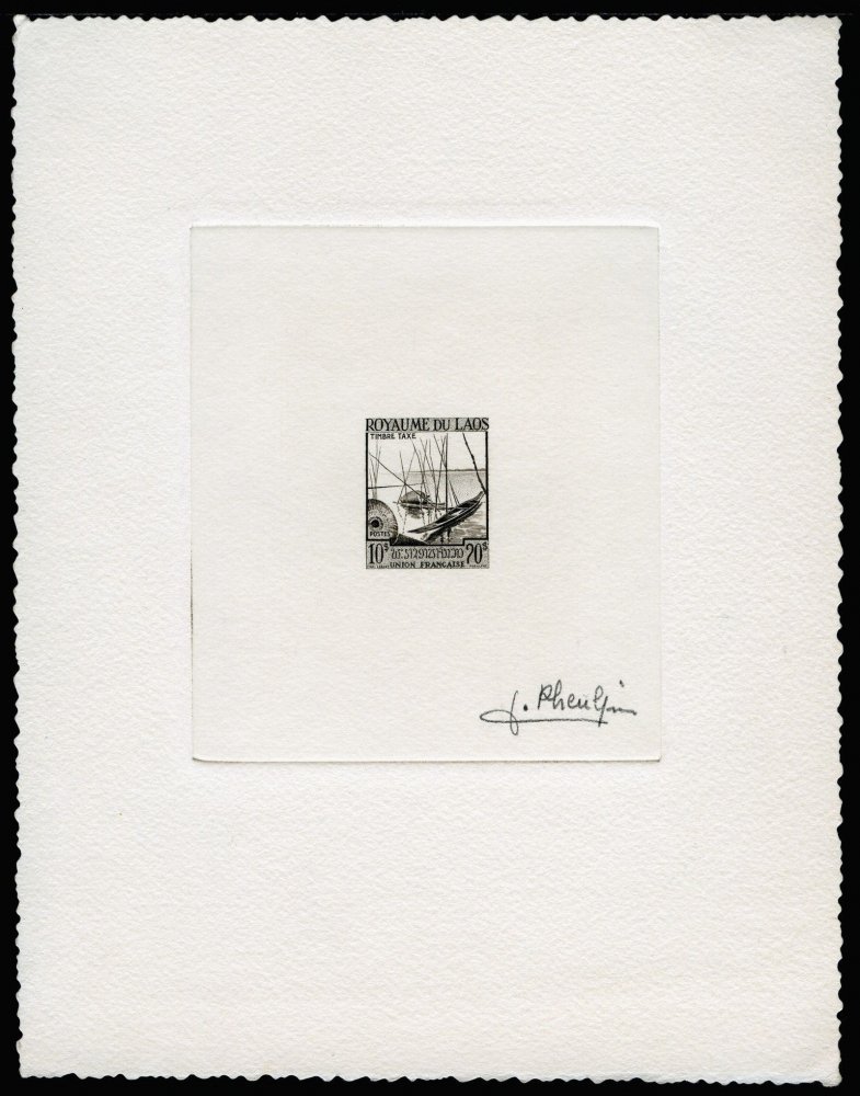Probedruck Fischerboote auf dem Mekong in Blockform mit Signatur Pheulpin.