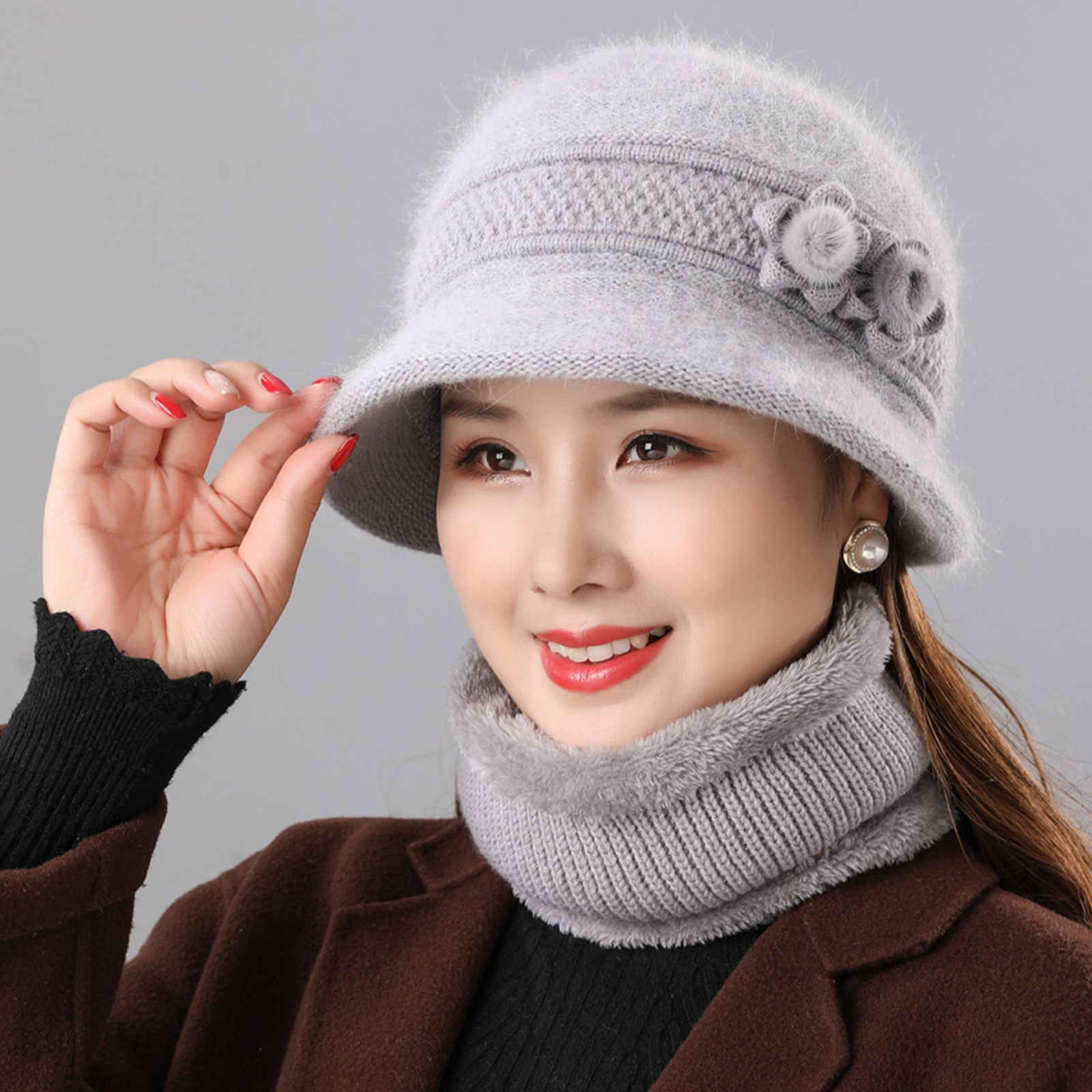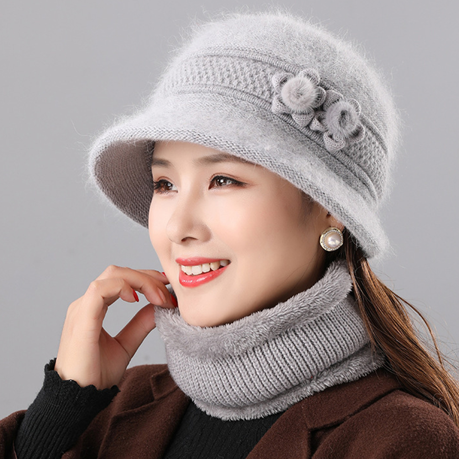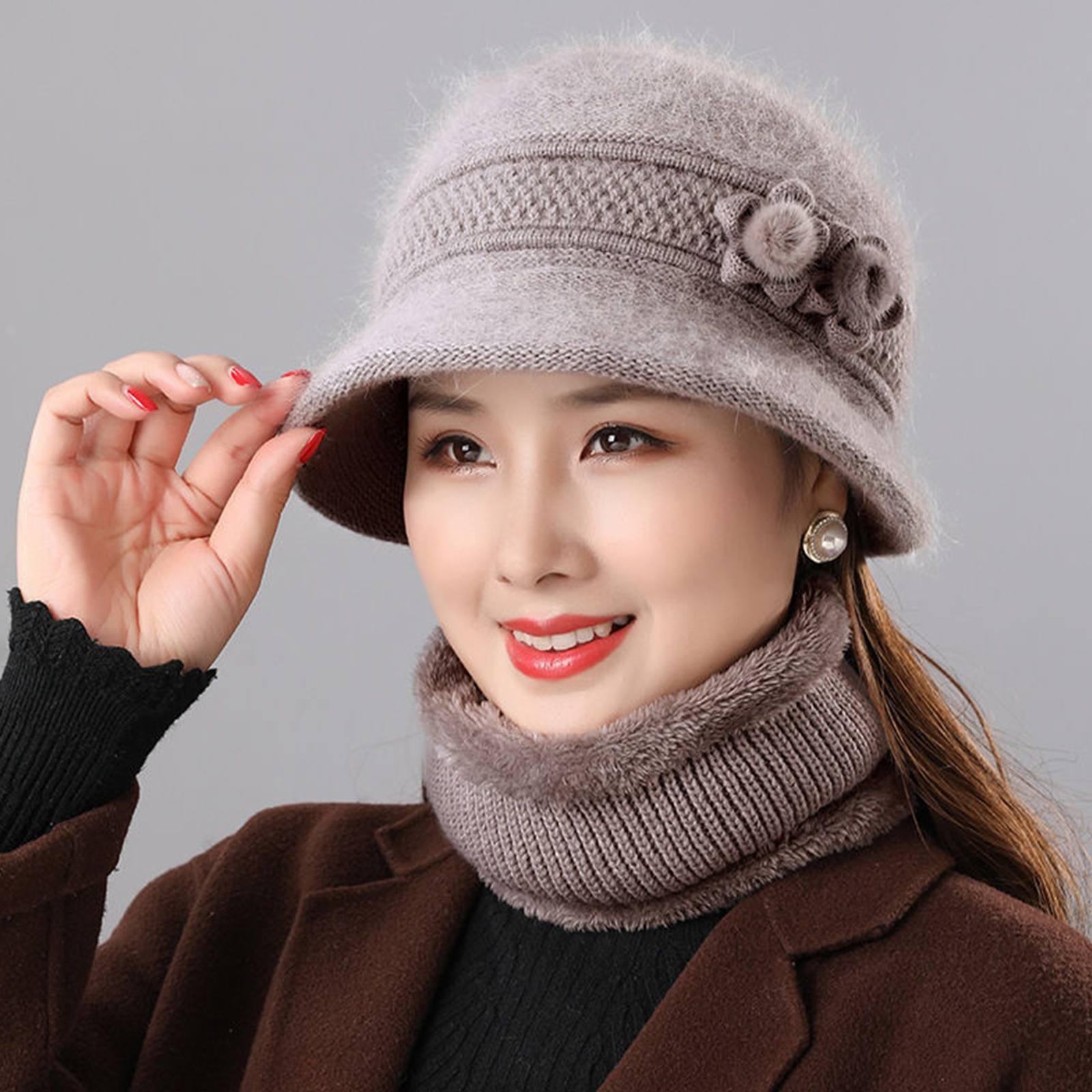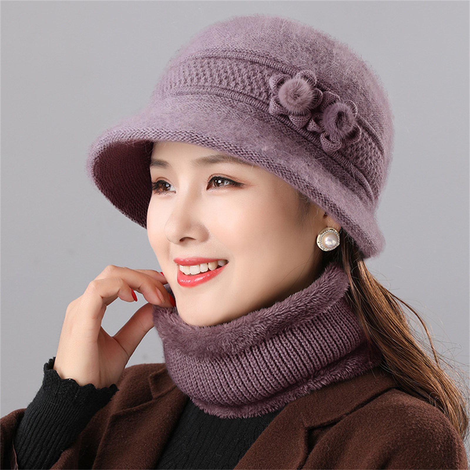 3. The hat is decorated with flowers, fashionable and simple, with scarves, windproof and warm in winter,