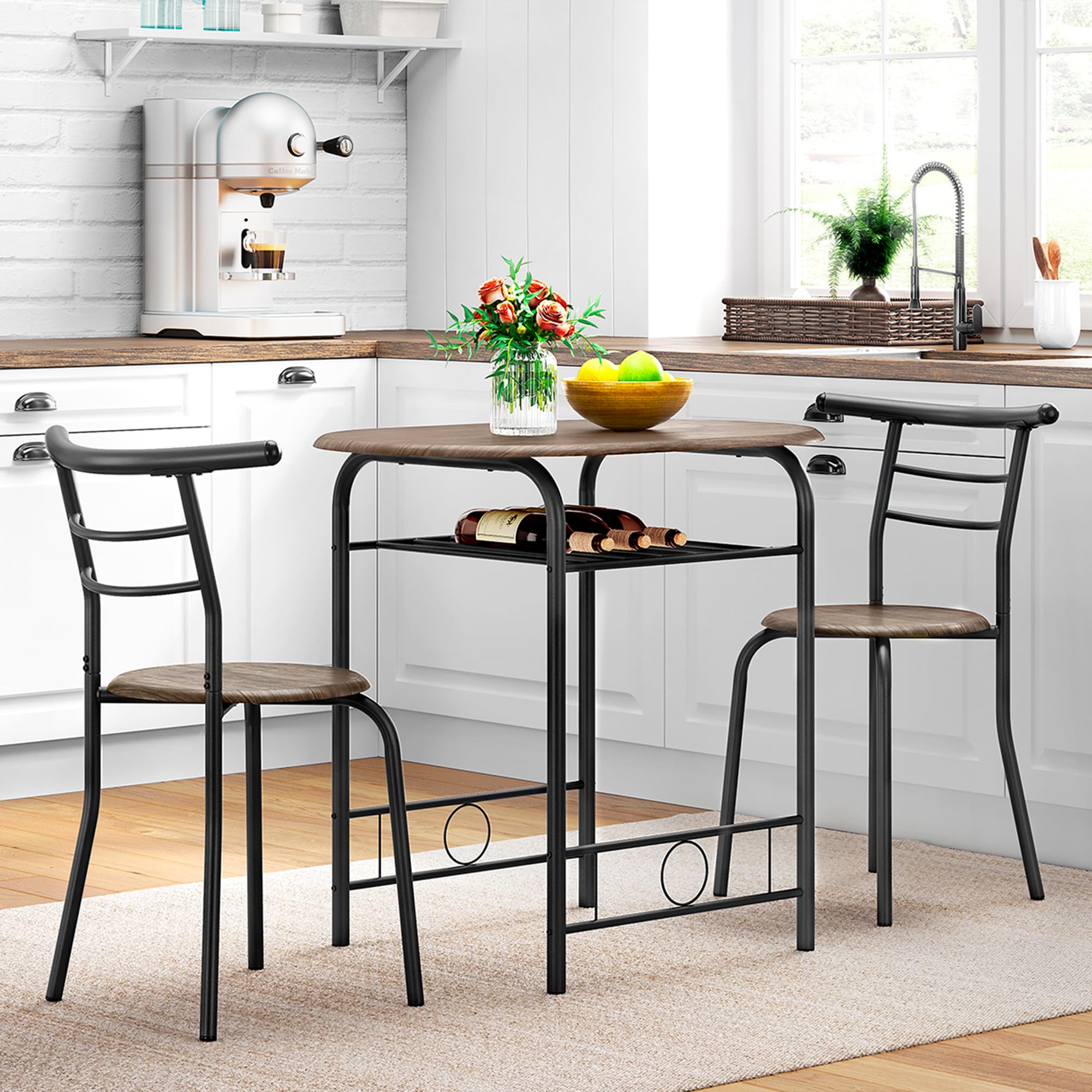 Yaheetech Set Mobili da Bar Tavolo e 2 Sedie Sala da Pranzo Cucina Piccoli Spazi