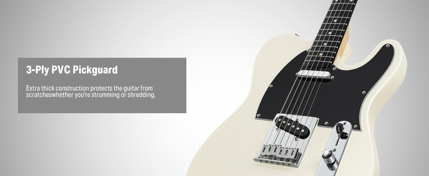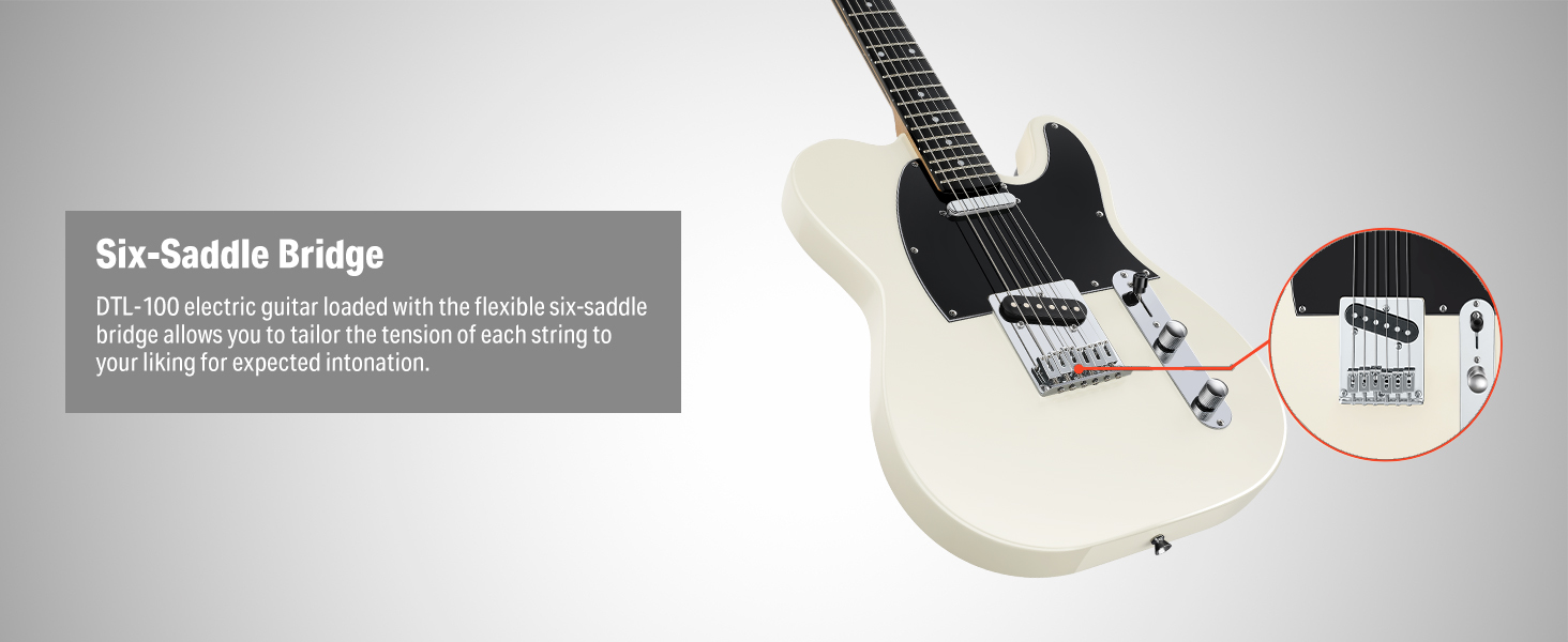 3-PLY Pickguard & SIX-SADDLE Bridge - Donner TC electric guitar uses a 4-ply pickguard and six-saddle bridge, each string can be tuned individually and accurately.