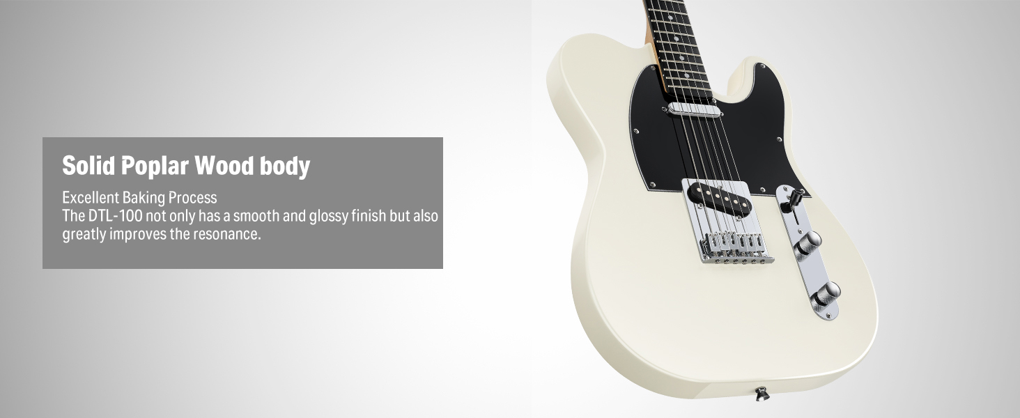 Solid Poplar Wood Body - Donner DTL-100 electric guitar use perilla wood fingerboard, Canadian maple neck, solid poplar wood body, which is a lightweight wood, known for its strong and powerful tone, has been improved by our baking paint process, which greatly improves the resonance.