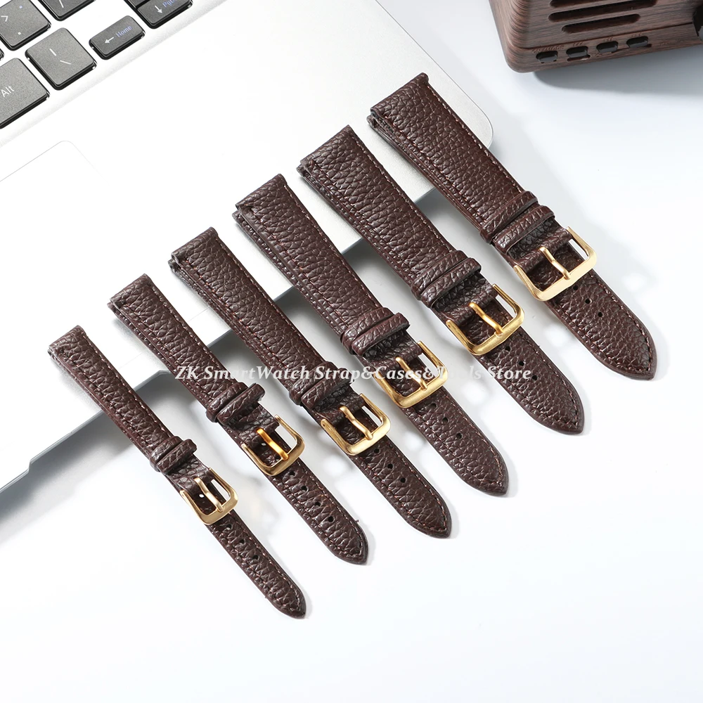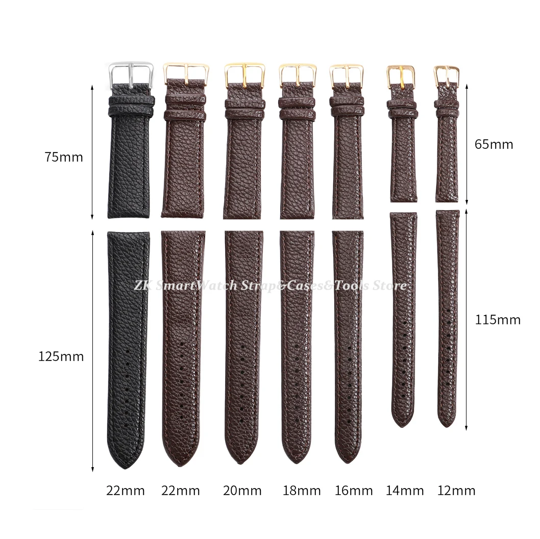 Universal Leather Watch Band 12Mm 14Mm 16Mm 18Mm 20Mm 22Mm Straps for Women Silm Wristband Metal Gold Silver Buckle Bracelets