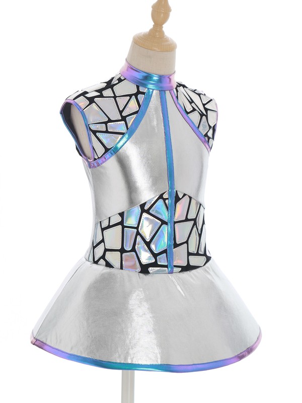 Designed with crew neck, sleeveless, high waist flared a-line dress alien costume for girl, back zipper closure is easy to put on and take off.
