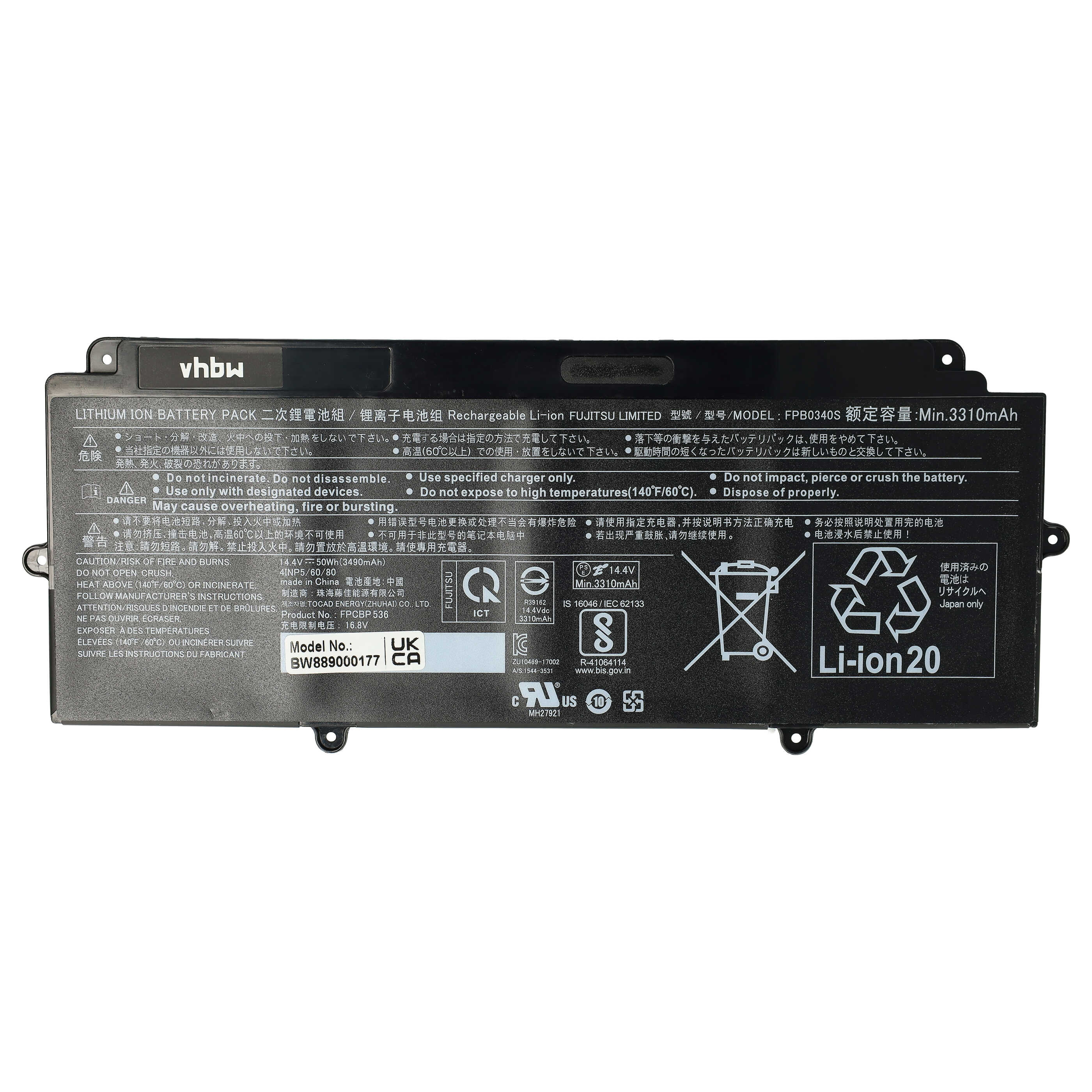 vhbw leistungsfähiger Ersatz-Akku für Fujitsu LifeBook U938 (VFY U9380MP78RDE) Laptop, Netbook (Li-Ion, 3490mAh, 14,4V)