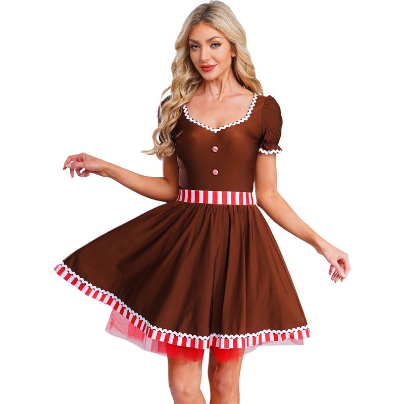 Made from 100% polyester, the dress is lightweight and comfortable, allowing for easy movement during the holiday festivities.