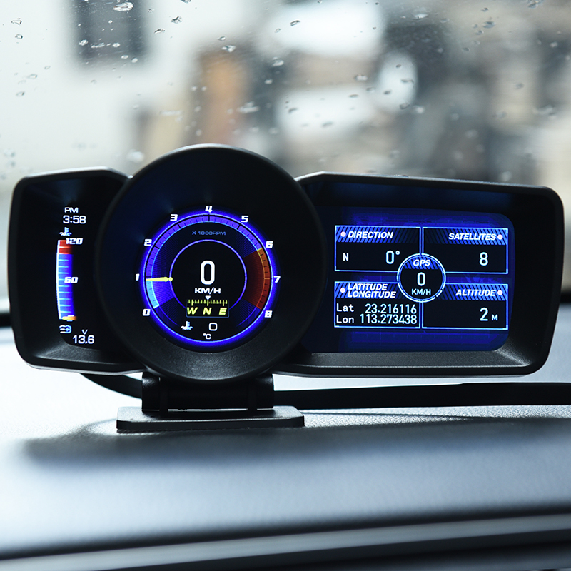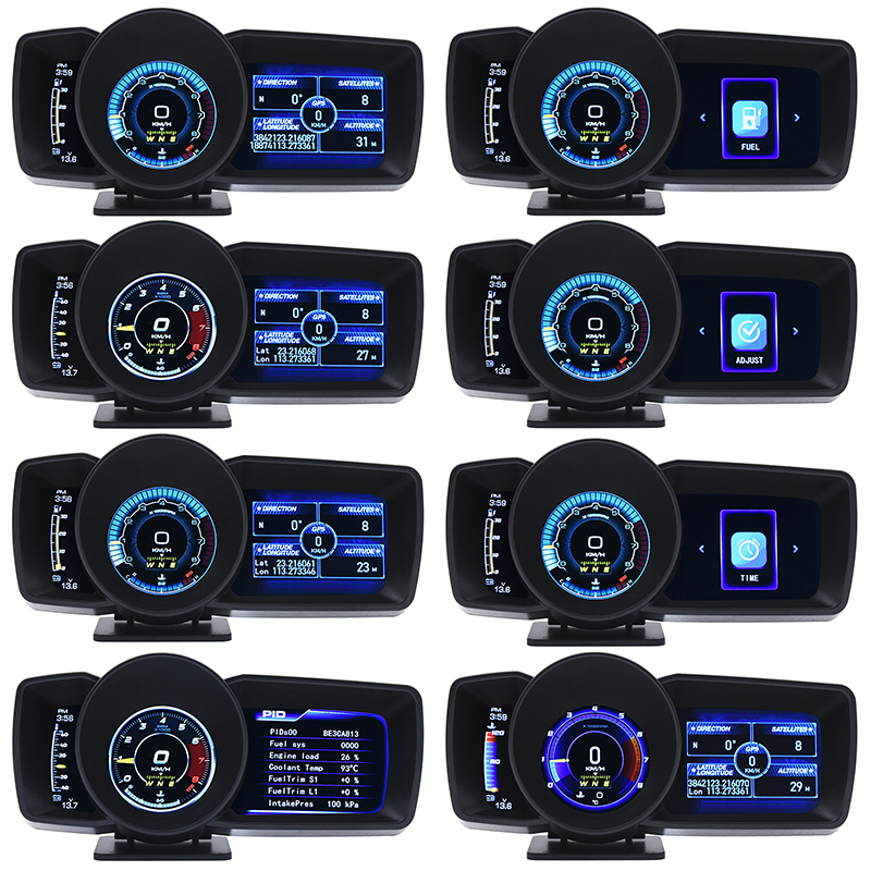 OBD and GPS mode can display at the same time by switch the display interface, GPS mode can work for all cars. Display the information and read it easier while driving. When alarm, the middle circular screen frame will be red and flashing.