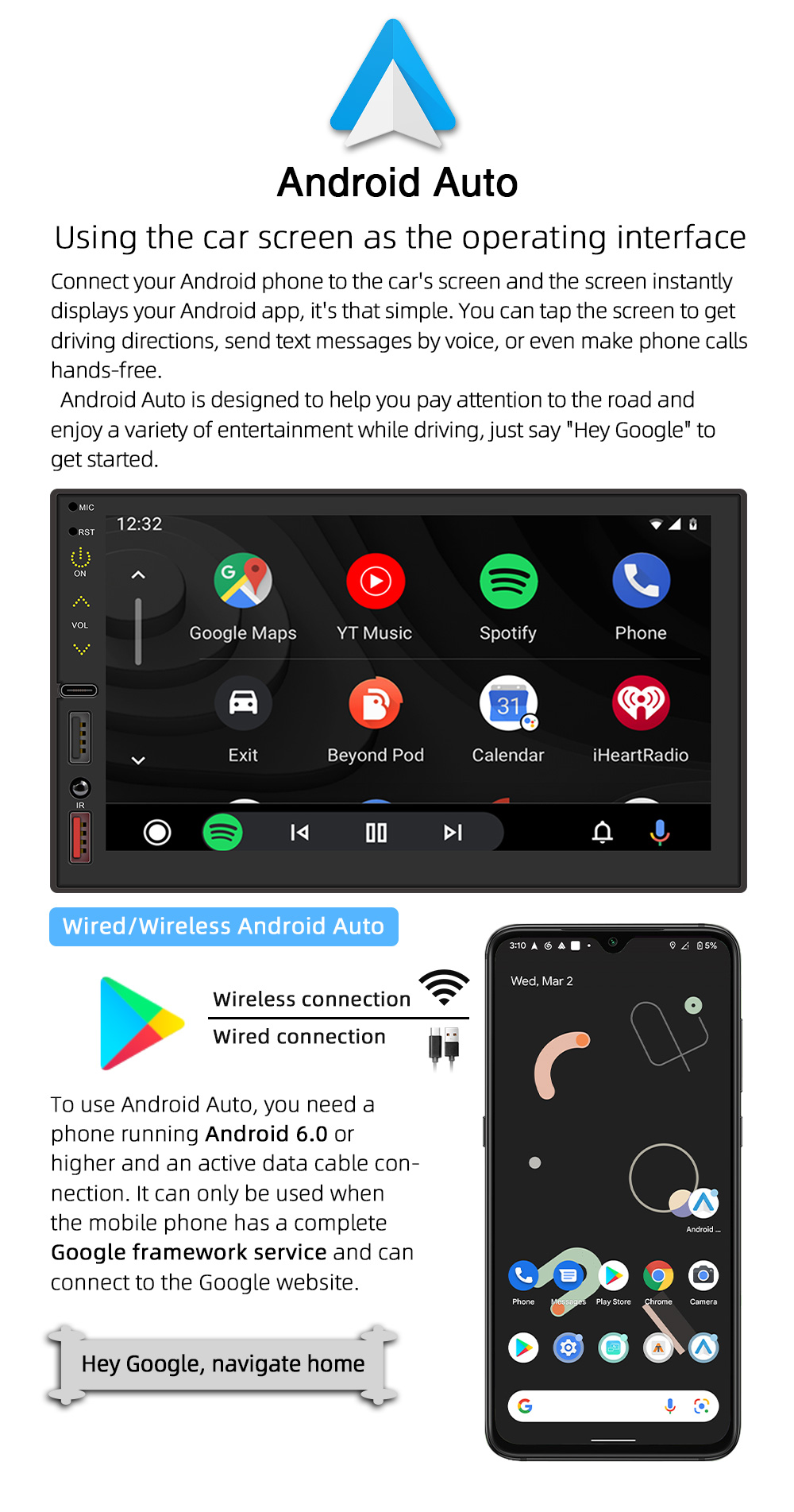 【Carplay & Android Auto】 Immerse yourself in a seamless and user-friendly infotainment experience with Apple CarPlay Android Auto. Connect your iPhone to Apple CarPlay or your Android smartphone to Android Auto and securely access calls, text messages, navigation, music and more. With intuitive touch screen operation, all functions are conveniently at hand while you stay safely behind the wheel. Use your favorite apps and stay connected at all times while keeping your eyes on the road. Turn your vehicle into an extended hub for your mobile devices and experience a new dimension of infotainment.