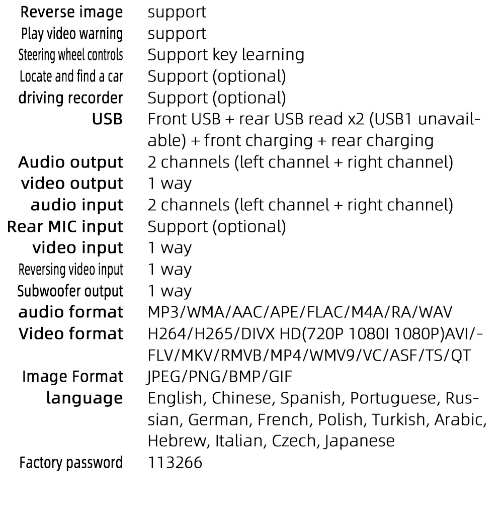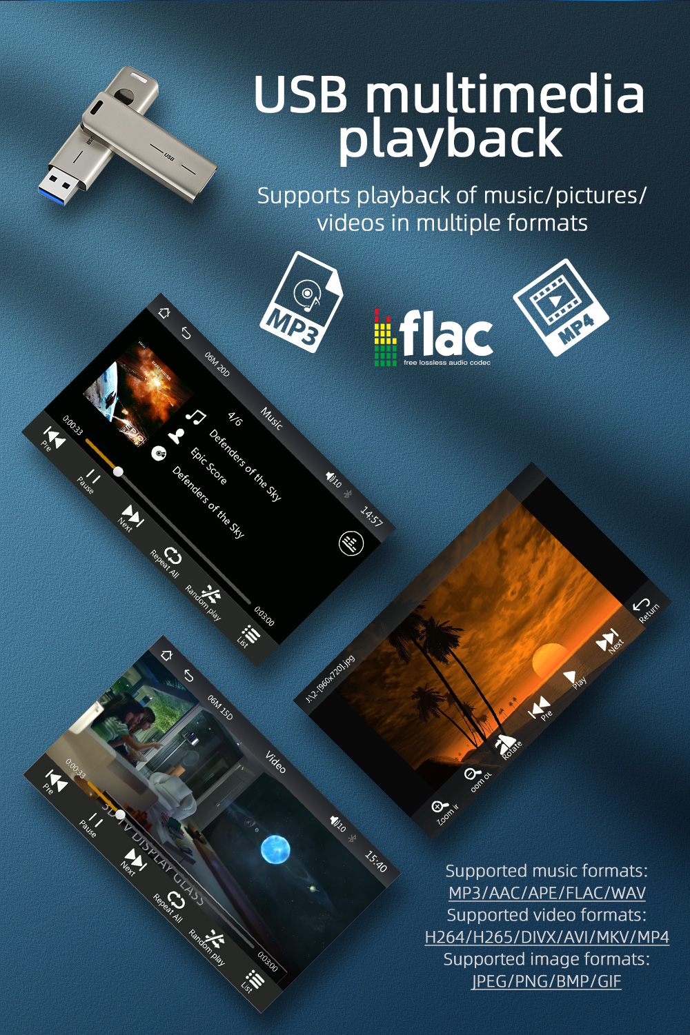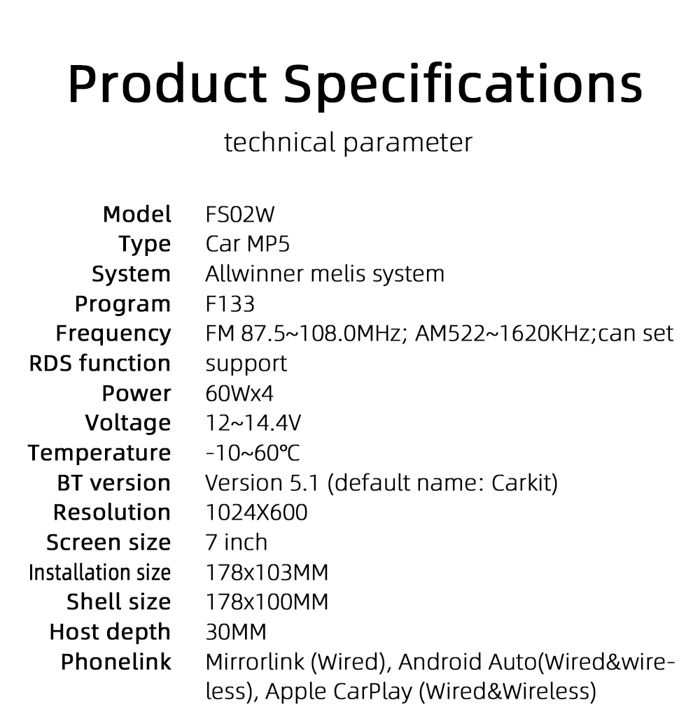 Function support: MP5/reverse/Bluetooth/mobile phone interconnection/wired carplay/wired Android auto