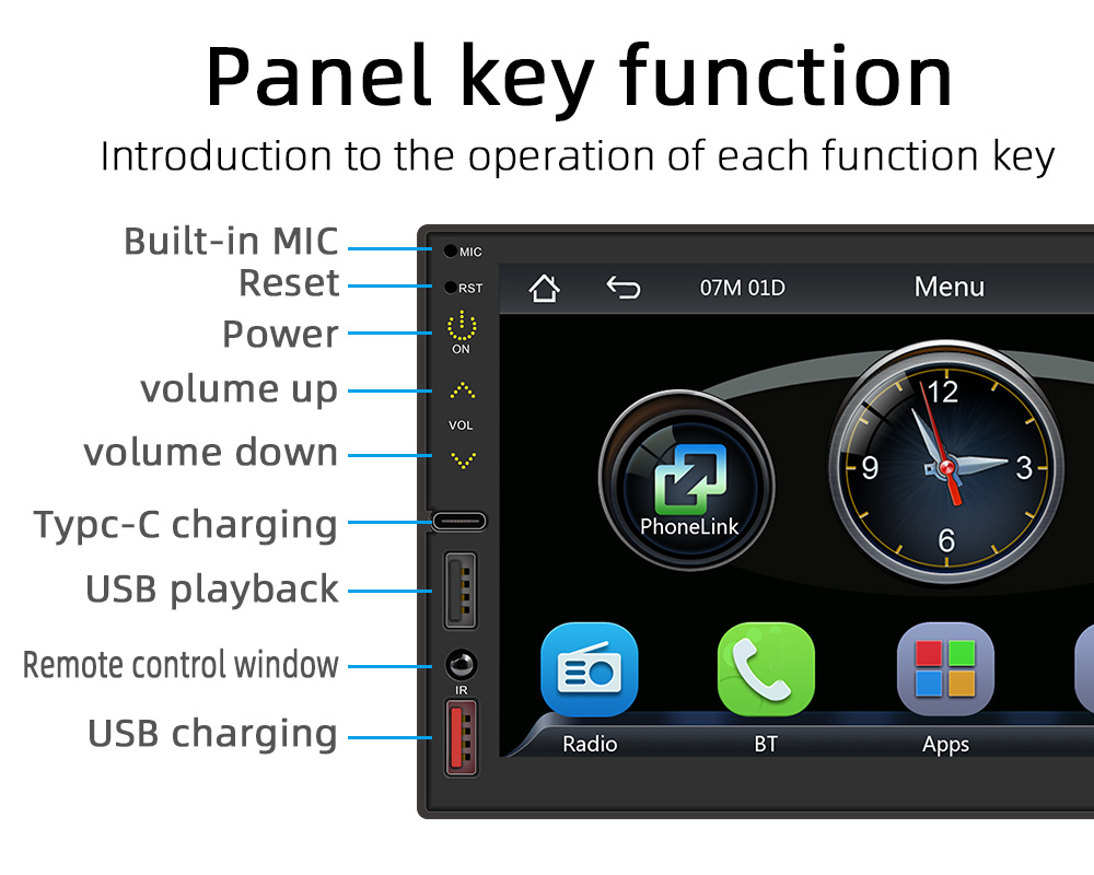 【FM Radio and Bluetooth】High quality FM radio for weather forecasts, live traffic information, news and more to make driving less boring. Supports saving 18 radio stations. Built-in car radio Bluetooth 4.0, supports hands-free calling, phonebook download and Bluetooth music playback.