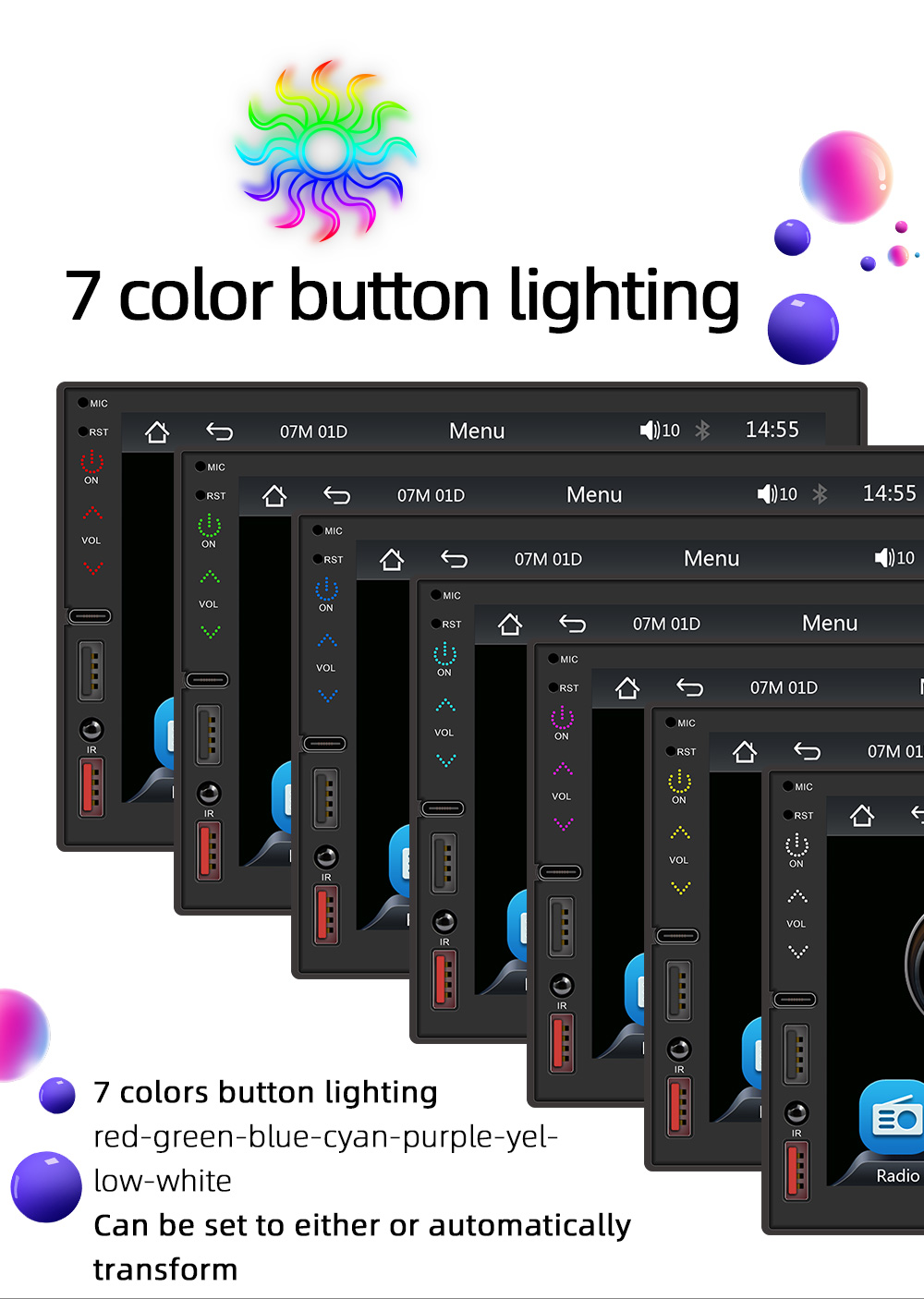 【Supports Seven Lighting Colors】Our product has seven color features that allow you to customize your experience with a range of dynamic visual effects. Switch between different colors and modes at the touch of a button to create a truly unique and engaging experience. So why settle for a simple and boring car radio when you can have one with seven colors? Try it today and see for yourself the difference!