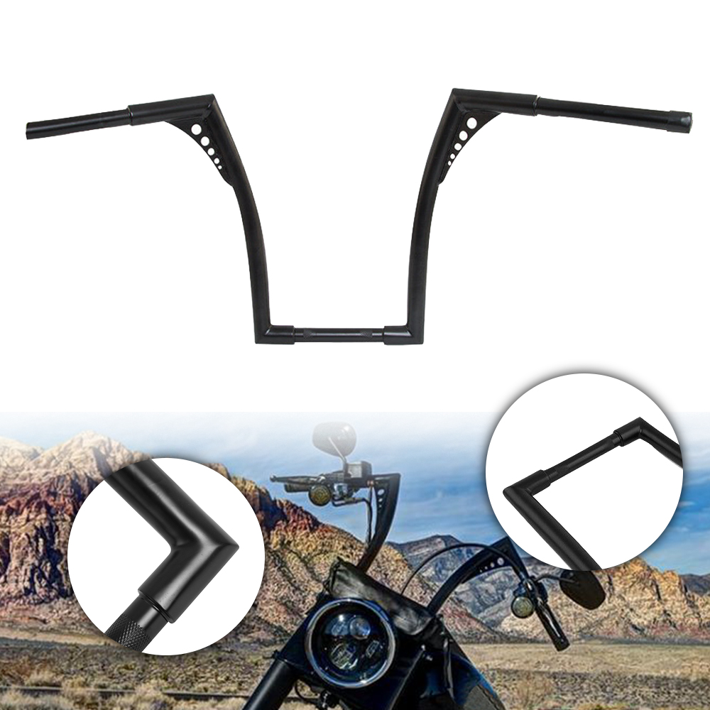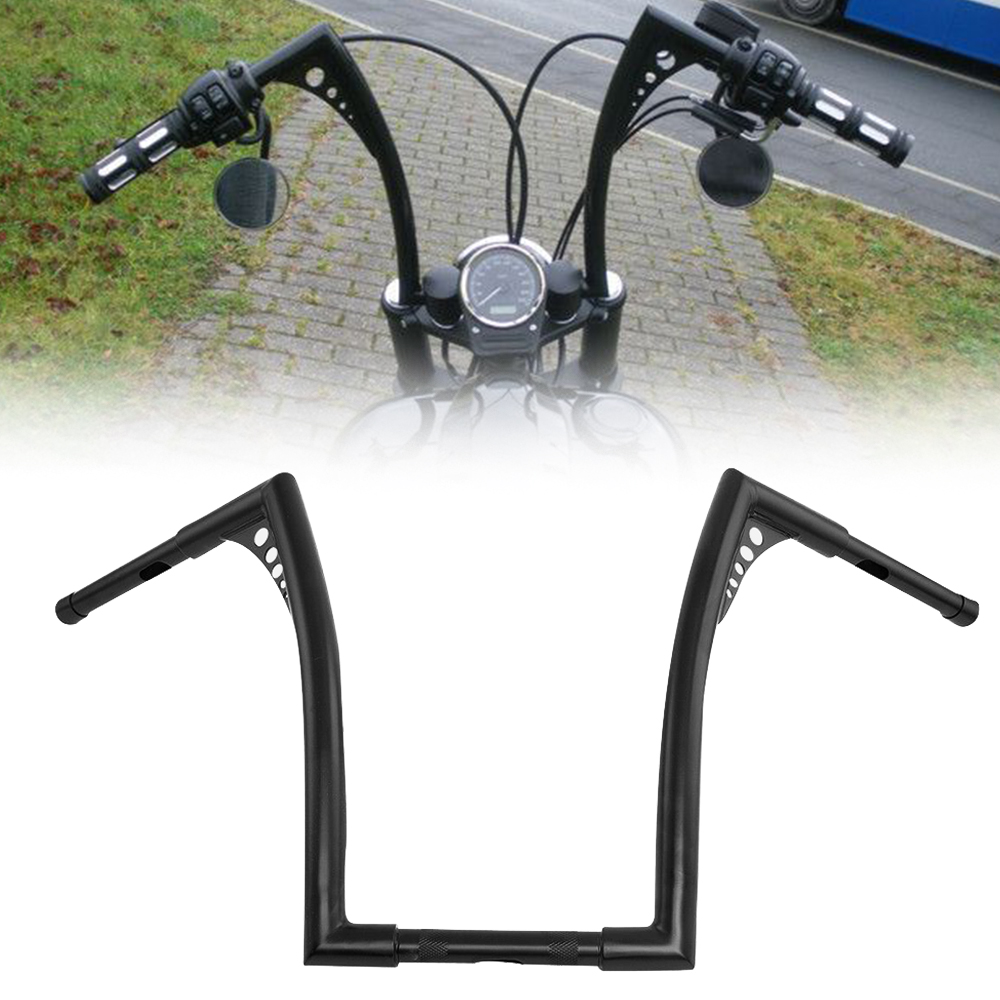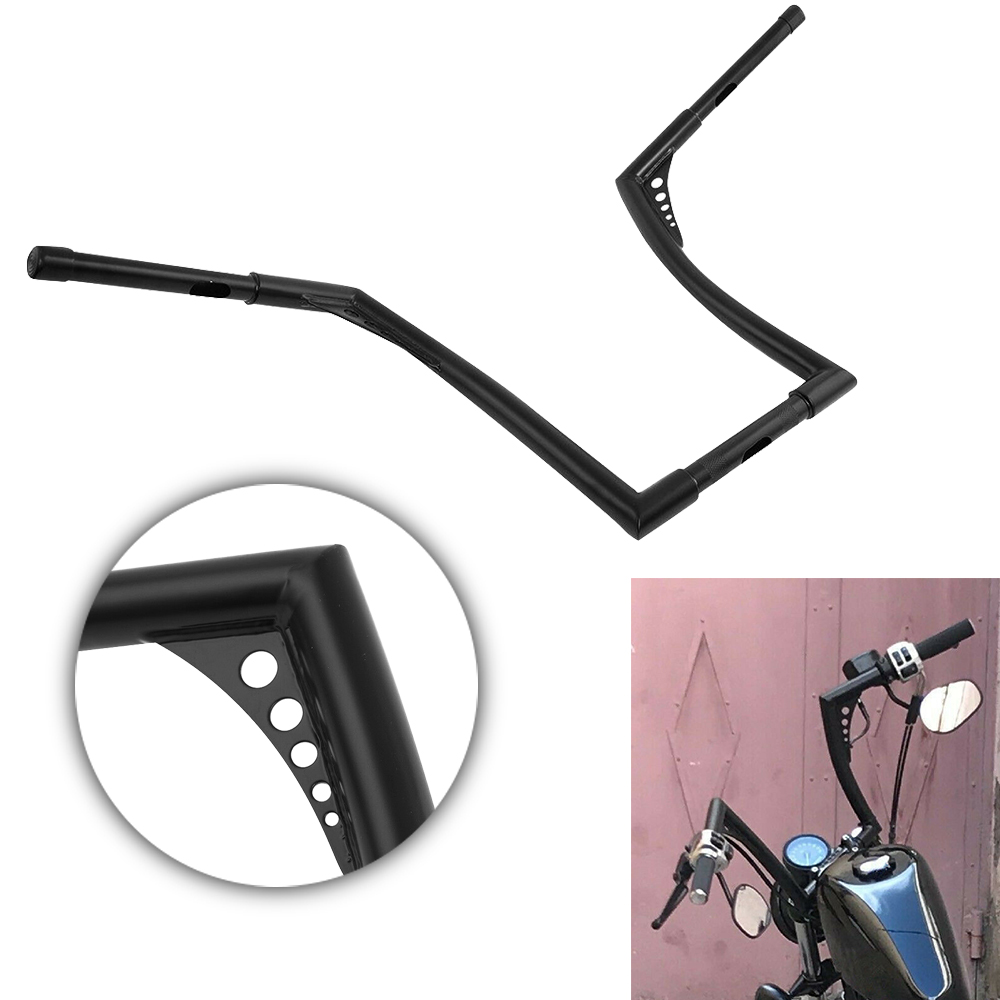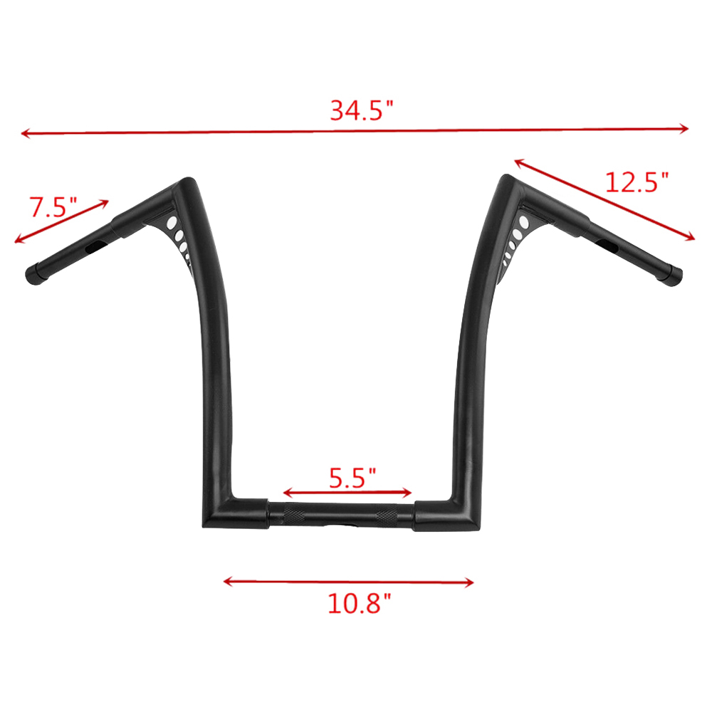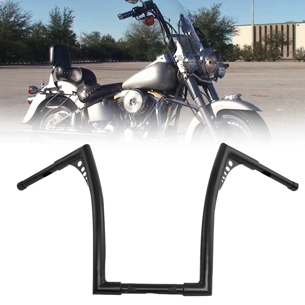 Description: Aftermarket 100% Brand New Color: Black Material: Iron #10" rise Chrome . 1''diameter center section tapers to 1" so that standard handlebar controls fit for32-1/2" wide from tip to tip #10" riseBlack. 1''diameter center section tapers to 1" so that standard handlebar controls fit for34-1/2" wide from tip to tip #12" rise Black. 1''diameter center section tapers to 1" so that standard handlebar controls fit for 32-1/2" wide from tip to tip #12" riseChrome.Bar Diameter: 1-1/4 inch ,Center Width: 10-1/2 inch, Area Width: 5.4 inch & Diameter: 1 inch ,Grip Area Bar Diameter: 1 inch #14" rise Black . 1 1/4"-diameter center section tapers to 1" so that standard handlebar controls fit for 34-1/2" wide from tip to tip #14" riseChrome. 1''diameter center section tapers to 1" so that standard handlebar controls fit forAbout 31″(81cm)wide from tip to tip #16" rise Chrome.1-1/4"-diameter Center section and tips taper to 1" so that standard handlebar controls fits for32(in) wide from tip to tip #16" riseBlack .1''diameter center section tapers to 1" so that standard handlebar controls fit for34-1/2" wide from tip to tip #18" rise Chrome . 1''diameter center section tapers to 1" so that standard handlebar controls fit 34-1/2" wide from tip to tip #18" rise Black.1''diameter center section tapers to 1" so that standard handlebar controls fit for34-1/2" wide from tip to tip Come with drilled wiring holes Feature:High class quality and very durable,Good Working Condition and Easy to Install. Fitment: For Harley FLST, FXST, Sportster XL, any Custom Application. Buyer needs to check the application according to the measurement above. Package included: 1x Ape Hangers Handlebar About us We are a factory specializing in the production of various motorcycle accessories Because there are too many products, we can't upload them all If you have any needs, you can ask us at any time The team leader or dealer is welcome to consult The parts you can't find can be found here. The parts you can find elsewhere will be cheaper here We also support small batch customization. It will be cool to add your own name or logo Finally, let's enjoy the fun brought by the locomotive~