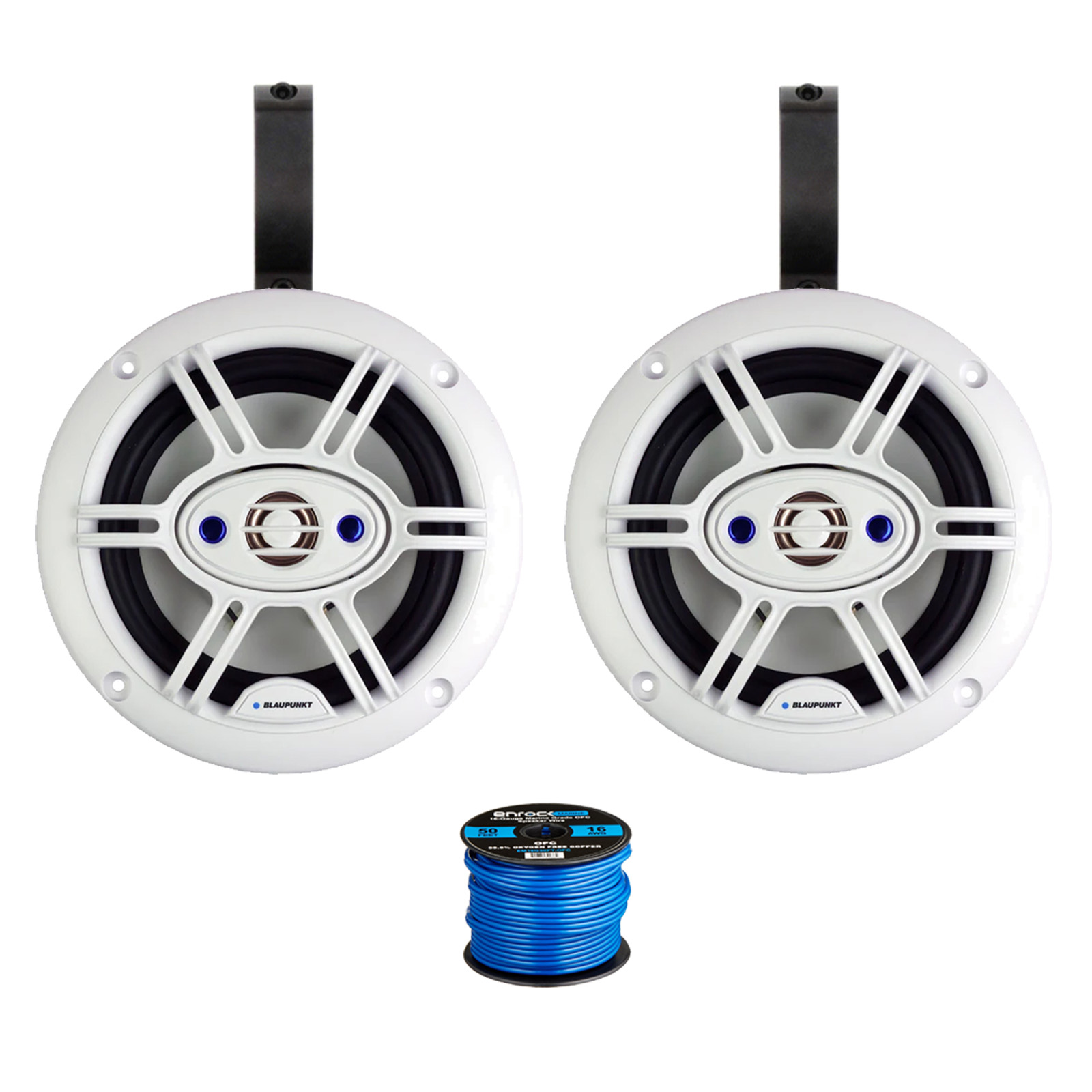 Blaupunkt 6.5" 240W Marine Speakers (Pair) w/ 2x 6.5" Black Speaker Pods + Wire