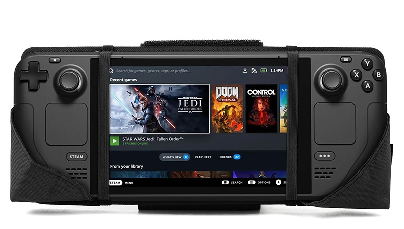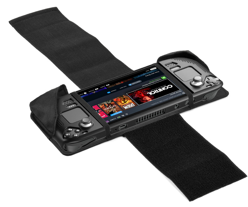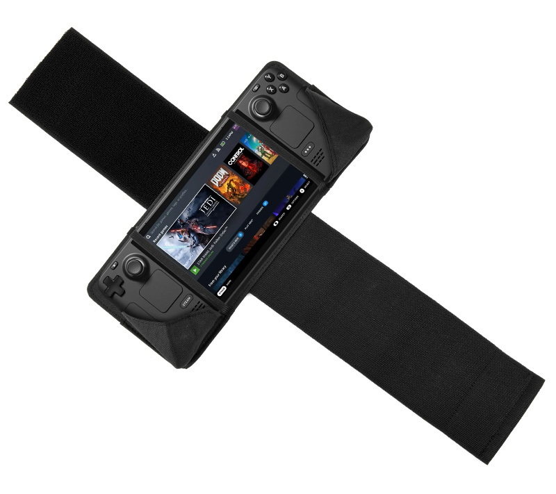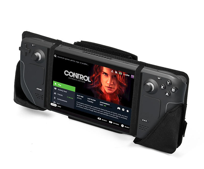 Valve game handheld, the material used in the black 600D over PU nylon cloth + PP board, easy to organize and storage, more sturdy and durable, with the elastic band, more close to the product, easy to use in the back seat of the car.