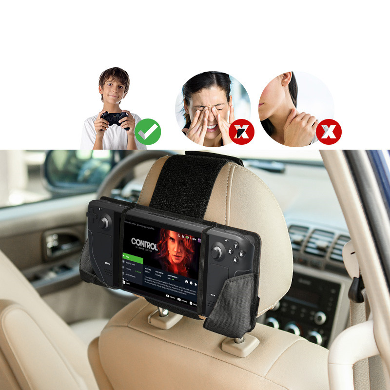 For Steam Deck Car Headrest Strap Black Heads Up Gaming, Eye and Neck Protection