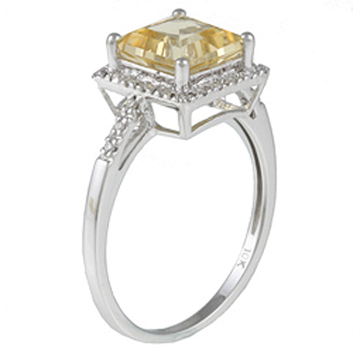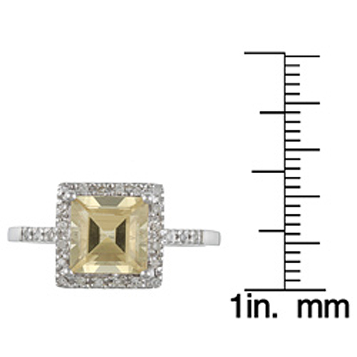 Este magnífico anillo brilla con un citrino genuino de talla princesa de 7 mm rodeado por un halo de ardientes diamantes blancos. Este anillo está hecho de oro blanco brillante de 10 quilates en un acabado altamente pulido. Este artículo se envía con una caja de anillo elegante gratis.