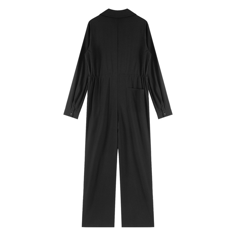 Women’s turn-down collar long sleeve coverall with a drawstring inside, which provide you with a snug fit.