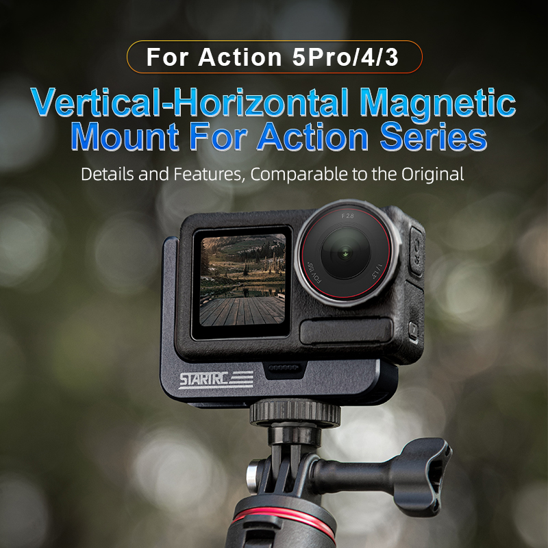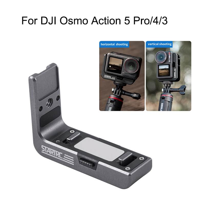 1.Designed for DJI Action series L-type quick release bracket, suitable for Action5pro/4/3 horizontal and vertical shooting quick release, one second switching, precise fit molding, assembling the camera is stable and durable, not easy to fall off.