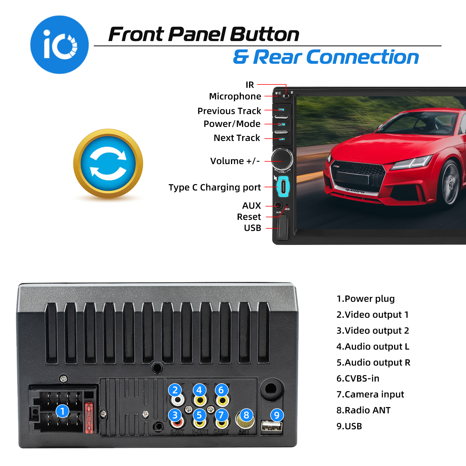 【FM Radio and Bluetooth】High quality FM radio for weather forecasts, live traffic information, news and more to make driving less boring. Supports saving 18 radio stations. Built-in car radio Bluetooth 5.0, supports hands-free calling, phonebook download and Bluetooth music playback.