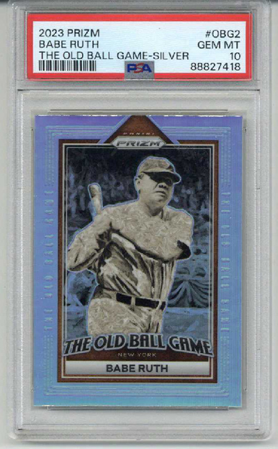 The item you are buying is a PSA GRADED and ENCAPSULATED 2023 Panini Prizm The Old Ball Game Silver Prizm #OBG2 card of Babe Ruth. The card was graded a 10 by PSA. This card comes from my personal collection. The plastic of the encapsulation has no cracks and is scratch free.