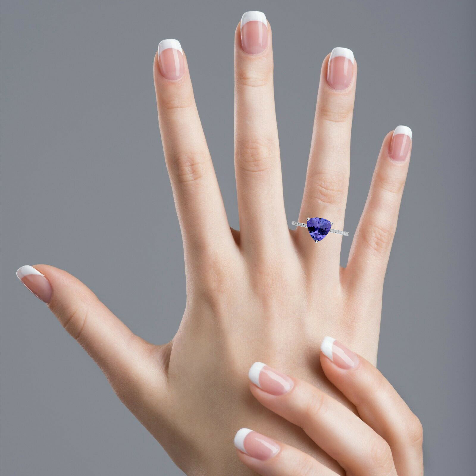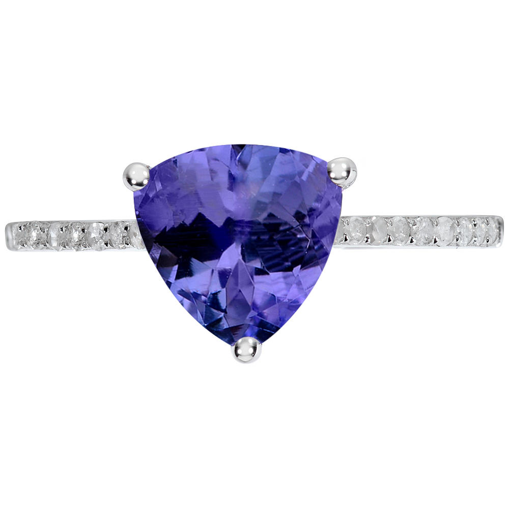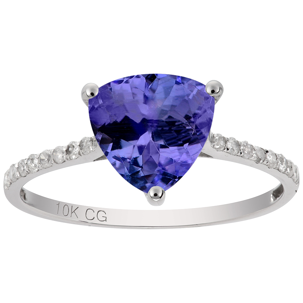 10k Solid White Gold Trillion Tanzanite & Diamond Birthstone Engagement Ring
