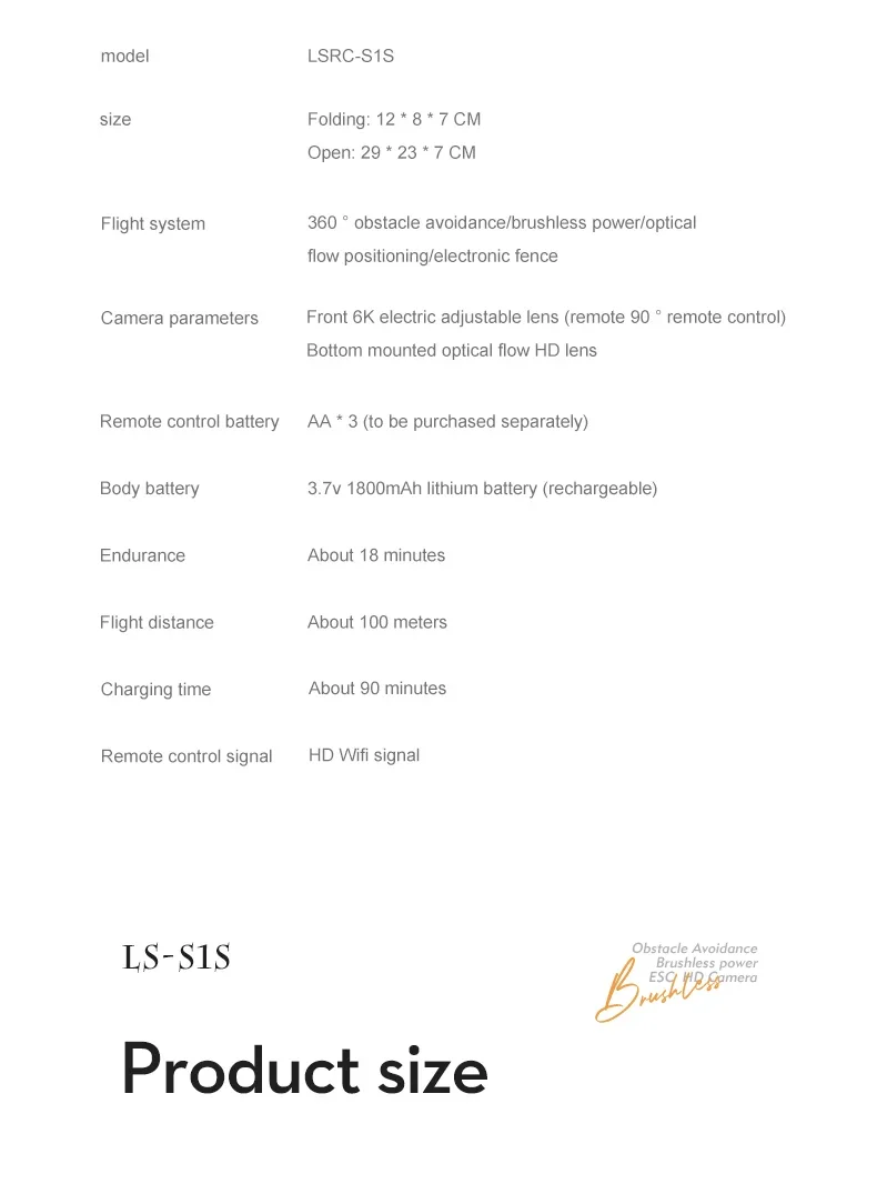 π LSRC-S1S 4K/8K HD Foldable Drone - Dual Camera, Brushless, FPV, Vol 18 Min