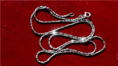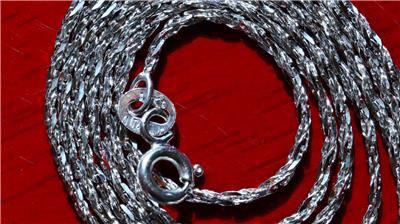 The necklace has shiny diamond cut links and links with a decorative textured pattern.