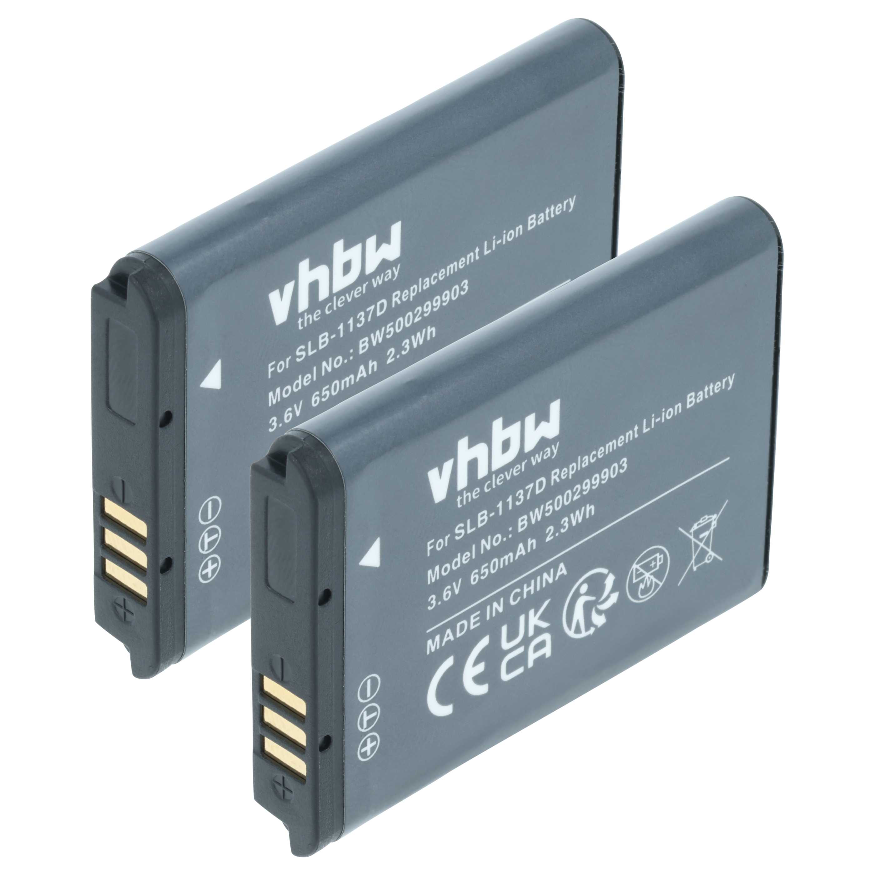 vhbw 2x Leistungsfähiger Ersatz-Akku für Samsung Digimax NV106HD, TL34HD, NV40, NV30, NV24 HD, NV11 Camcorder (Li-Ion, 750mAh, 3,6V)