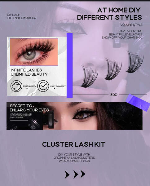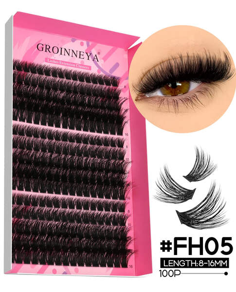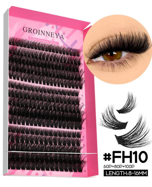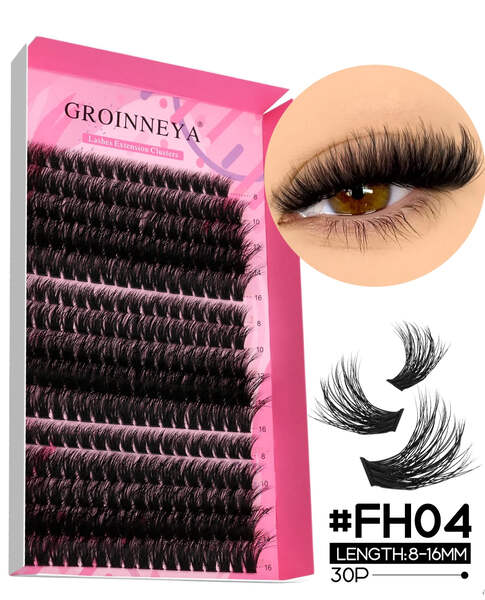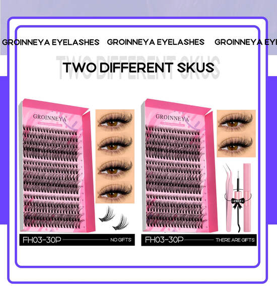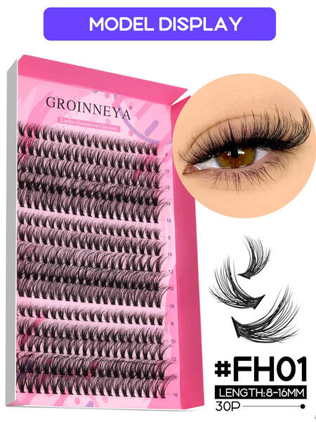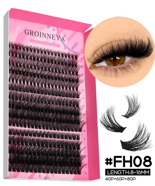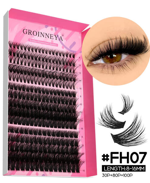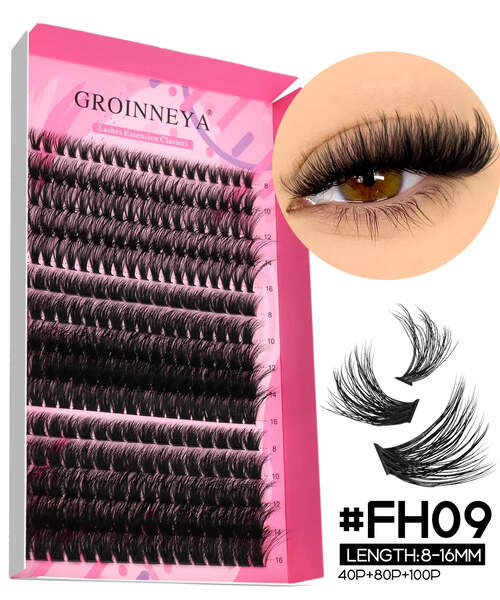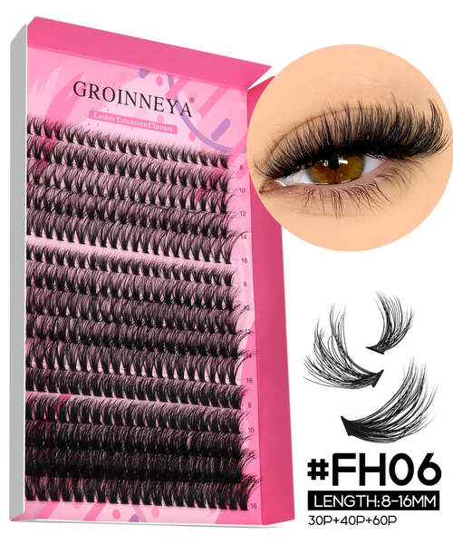 Mixed Lash Set: A curated combination of GROINNEYA individual lashes (for a soft, natural gradient) and cluster lashes (for extra volume and drama).