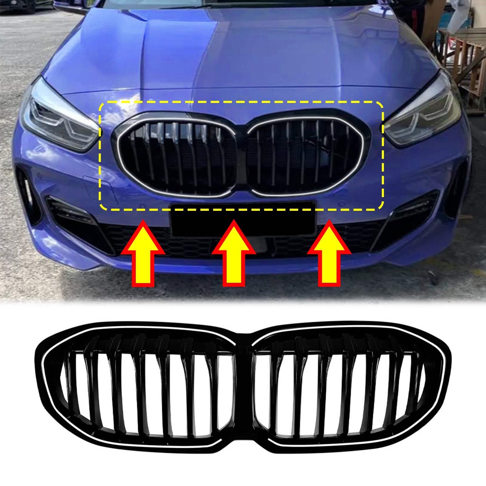 For BMW 1 Series F40 2019-2024 2023 Front Grille Grill w/ LED Light Single Line