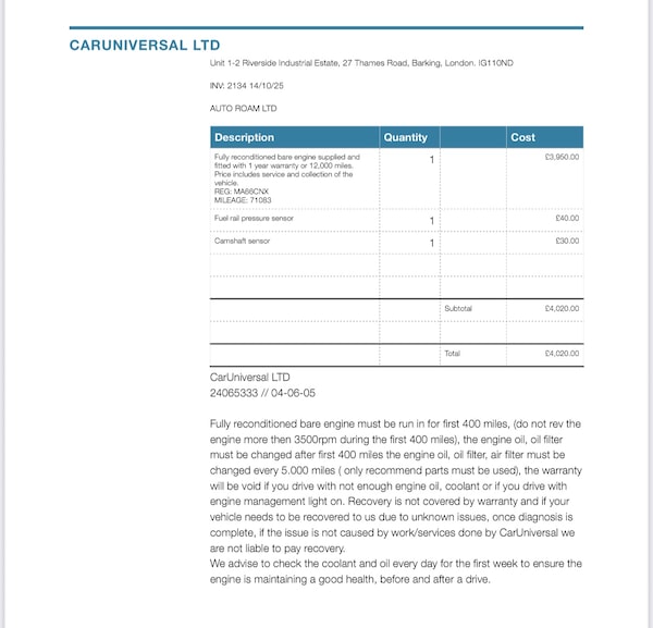 NEW ENGINE £4020 RECEIPT 1 YEAR WARRANTY A/C NAV