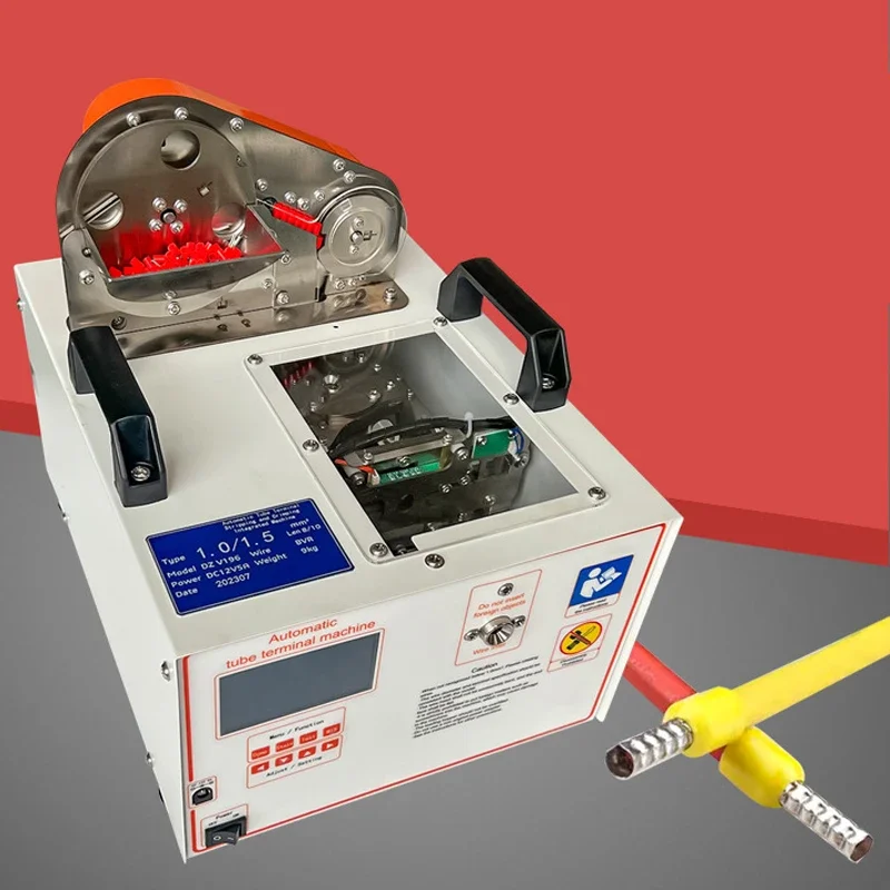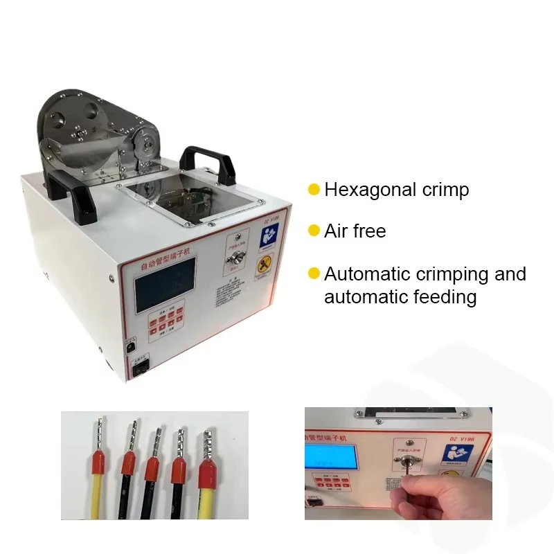 The semi-automatic tubular terminal crimping machine is used to press round tubes with loose granules, and to strip and end hexagonal insulated needle-shaped tubular terminals