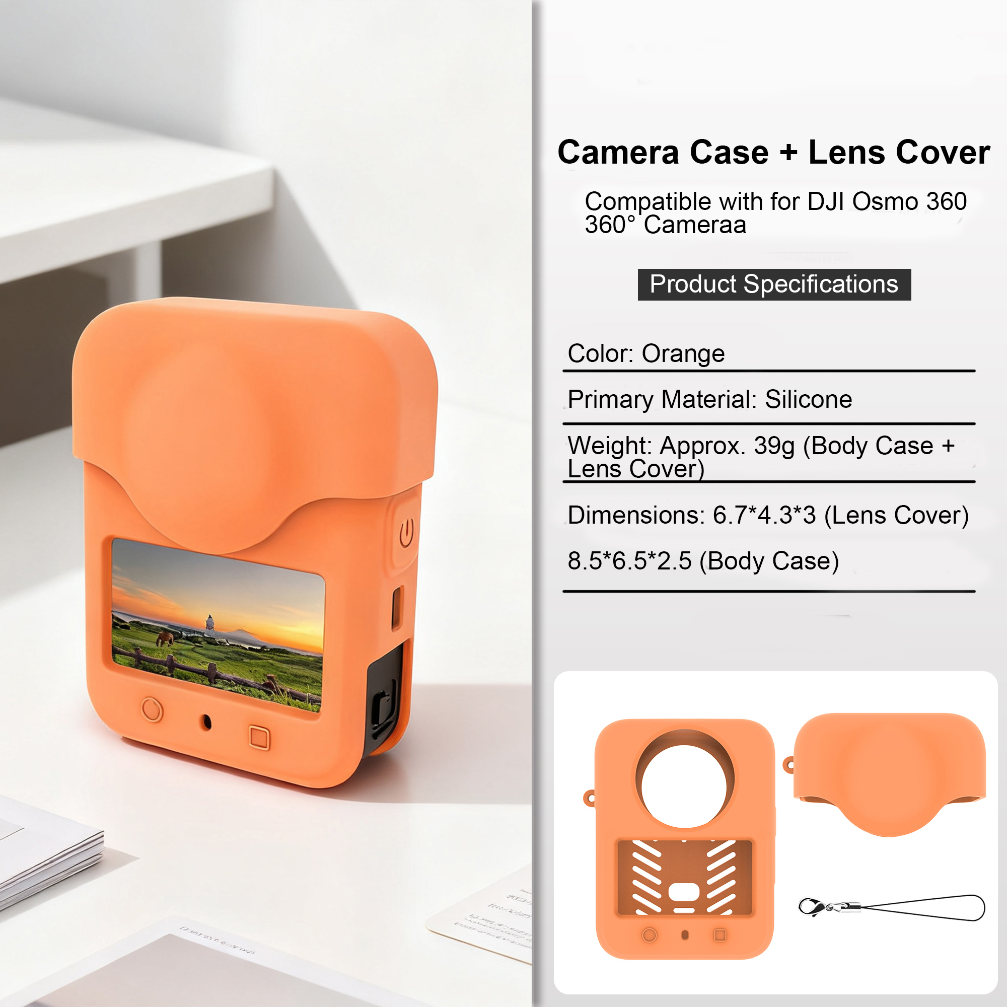 Silicone Sleeve Case + lens cover for dji osmo 360, Soft Protective Case  Battery Side Open, All-Round Protect Action Camera Accessories