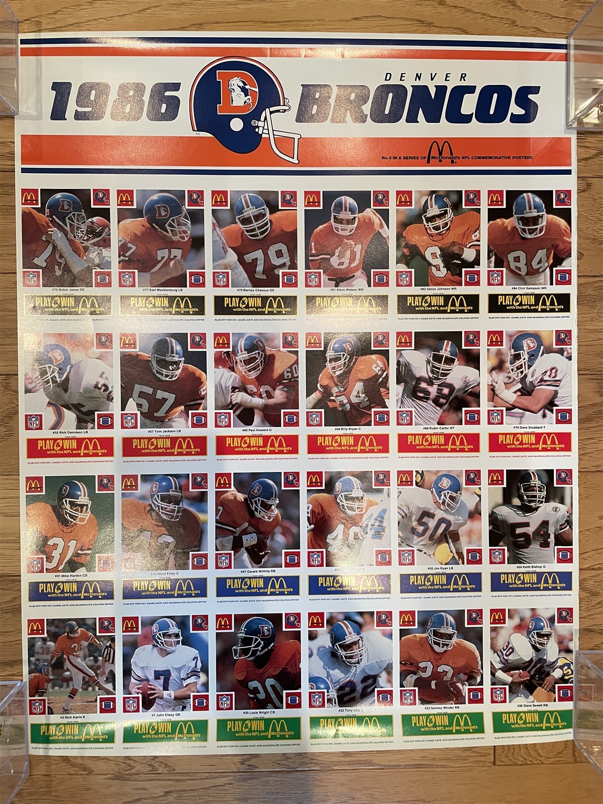 1986 McDonald's Denver Broncos Elway Football Uncut Sheet Poster *US86
