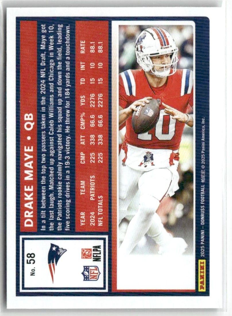 | Drake Maye 2025 Donruss Press Proof Purple New England Patriots #58 | ||||||||||||||||