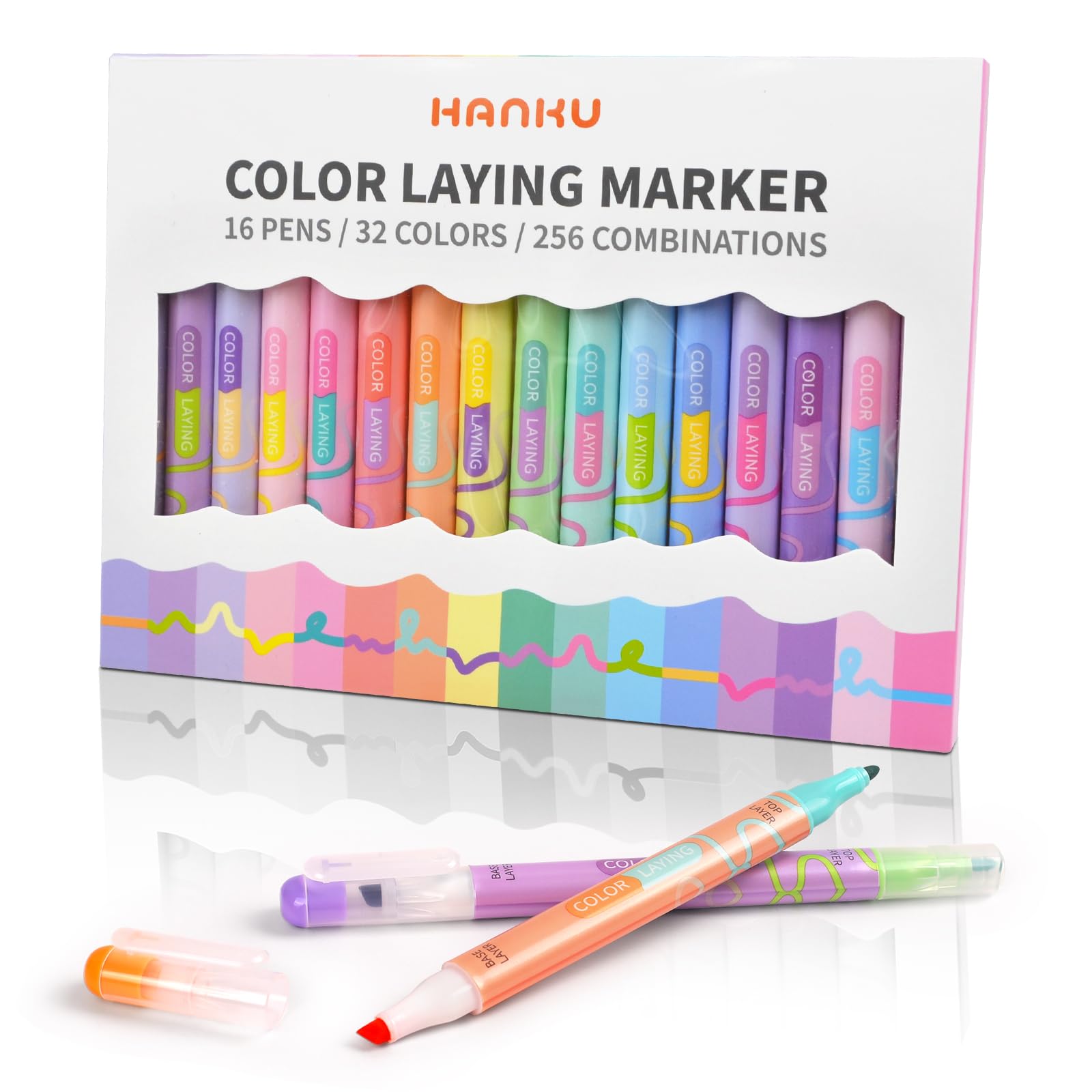 HANKU Color Layering Double Sided Markers,16pcs 32Colors Dual Tip Magic Markers,Broad and Fine Tips,Color Changing washable markers,Dry-Quickly Non-Toxic Pens for Bullet Journal,Coloring books