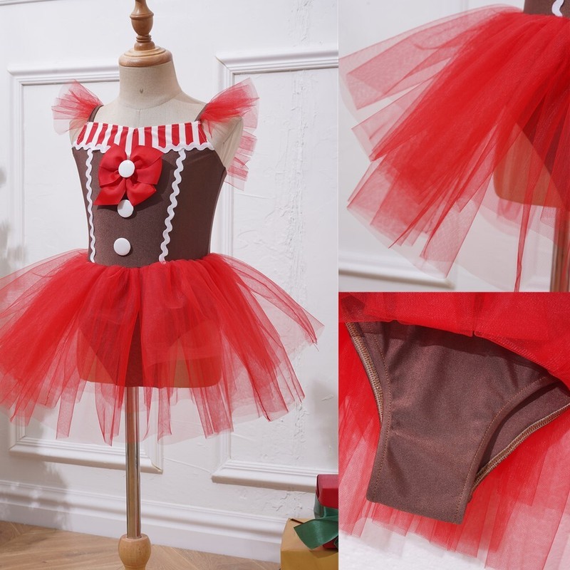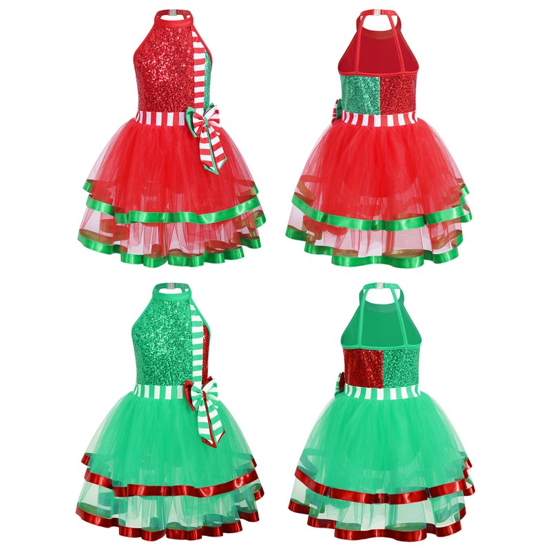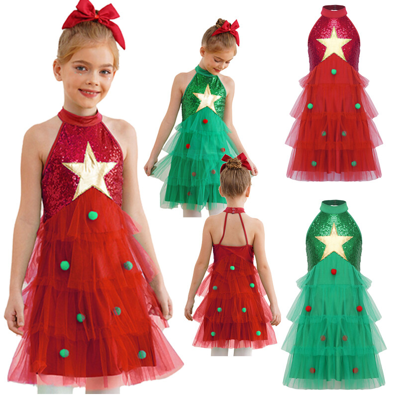 Kids Girls Christmas Costume Party Dance Tutu Dress Sleeveless Mesh Dress